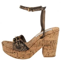 Stella McCartney Beige Faux Patent Leather Linda Leopard Print Cork Wedge Sandals Size 36 For Women