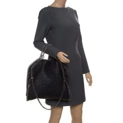 Stella McCartney Black Croc Embossed Faux Leather Medium Falabella Star Box Bag For Women