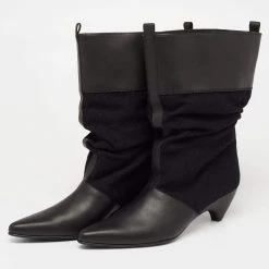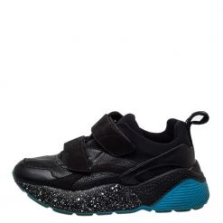 Stella McCartney Black Faux Leather And Faux Suede Eclypse Velcro Low Top Sneakers Size 39 For Women