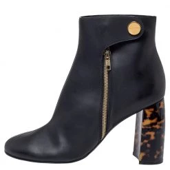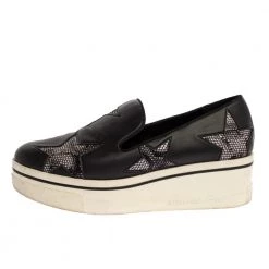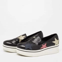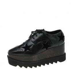 Stella McCartney Black Faux Leather And Velvet Elyse Star Platform Lace Up Booties Size 40 For Women