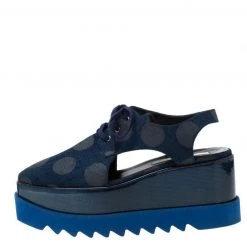Stella McCartney Blue Camo Print Canvas Smoking Slippers Size 38 For Women
