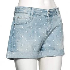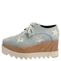 Stella McCartney Light Blue Denim Fabric Elyse Stars Platform Lace Up Sneakers Size 35 For Women