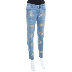 Stella McCartney Light Wash Star Printed Denim Binx Platform Slip On Sneakers Size 40 For Women