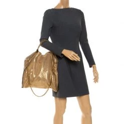 Stella McCartney Metallic Gold Wicker Faux Leather Medium Falabella Box Shoulder Bag For Women