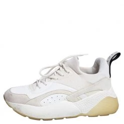 Stella McCartney White Faux Leather And Faux Suede Eclypse Low Top Sneakers Size 38 For Women