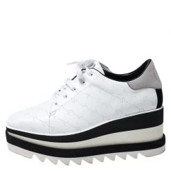 Stella McCartney White Perforated Logo Faux Leather Elyse Platform Sneakers Size 37.5 For Women