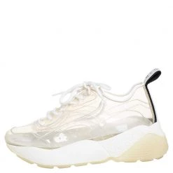 Stella McCartney White/Beige Faux Leather And Suede Eclypse Chunky Sneakers Size 39 For Women