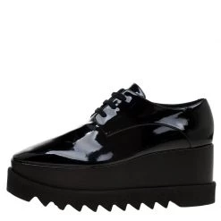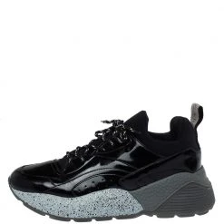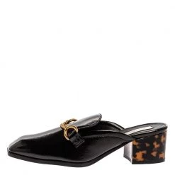 Stella McCartney Black Faux Patent Leather Chain Detail Block Heel Mules Size 36.5 For Women