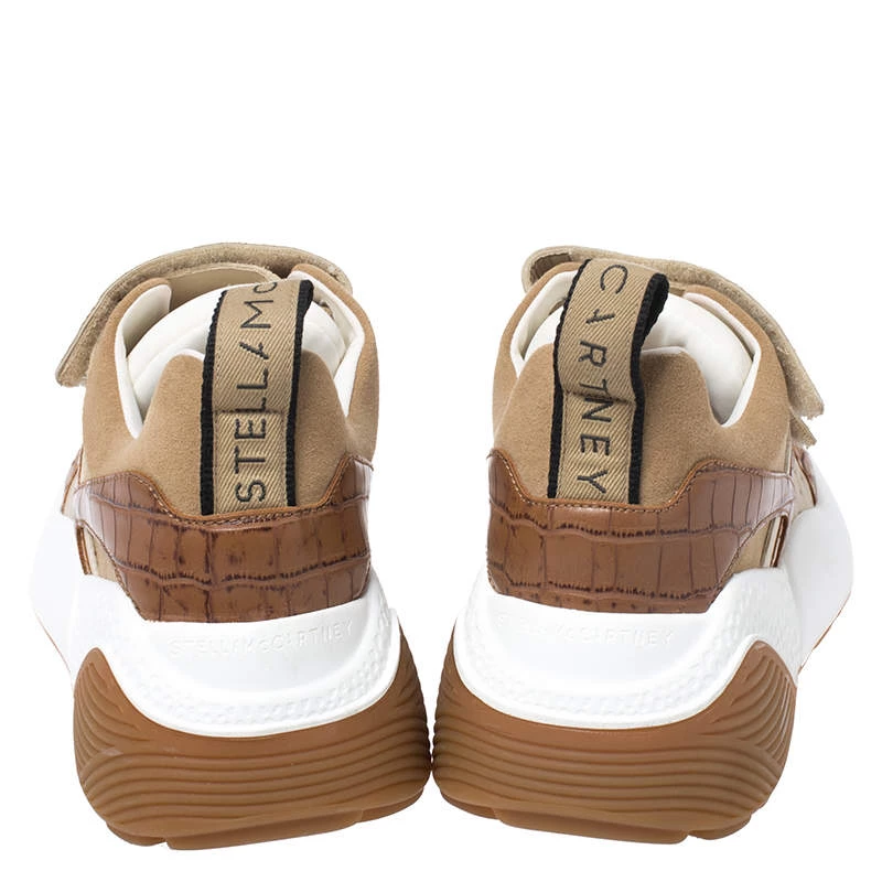 Stay in comfort with these sneakers from Stella McCartney. Crafted with a combination of fabric and faux leather, this pair has textured soles in rich tones along with velcro closure on the uppers. Comfortable fabric lining and tough rubber soles complete these Eclypse sneakers.