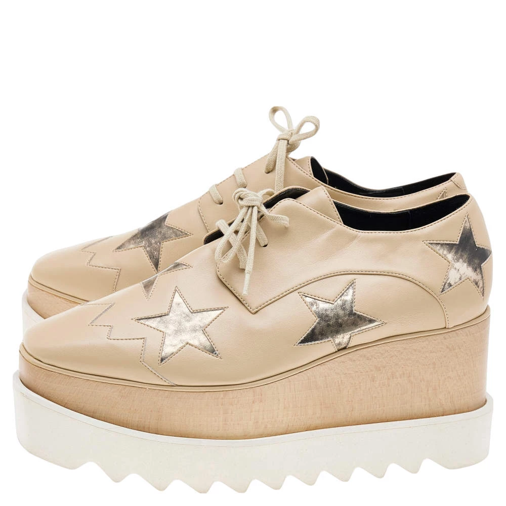 The House of Stella McCartney exudes high style and unique fashion with these Elyse Star sneakers. They are brimming with exquisite details like the beige faux leather exterior and Star prints. They come with lace-ups on the vamps and thick platforms. Grab these sneakers today and express your fabulous style!