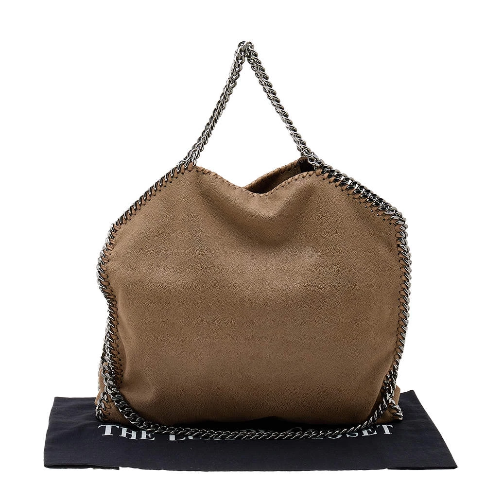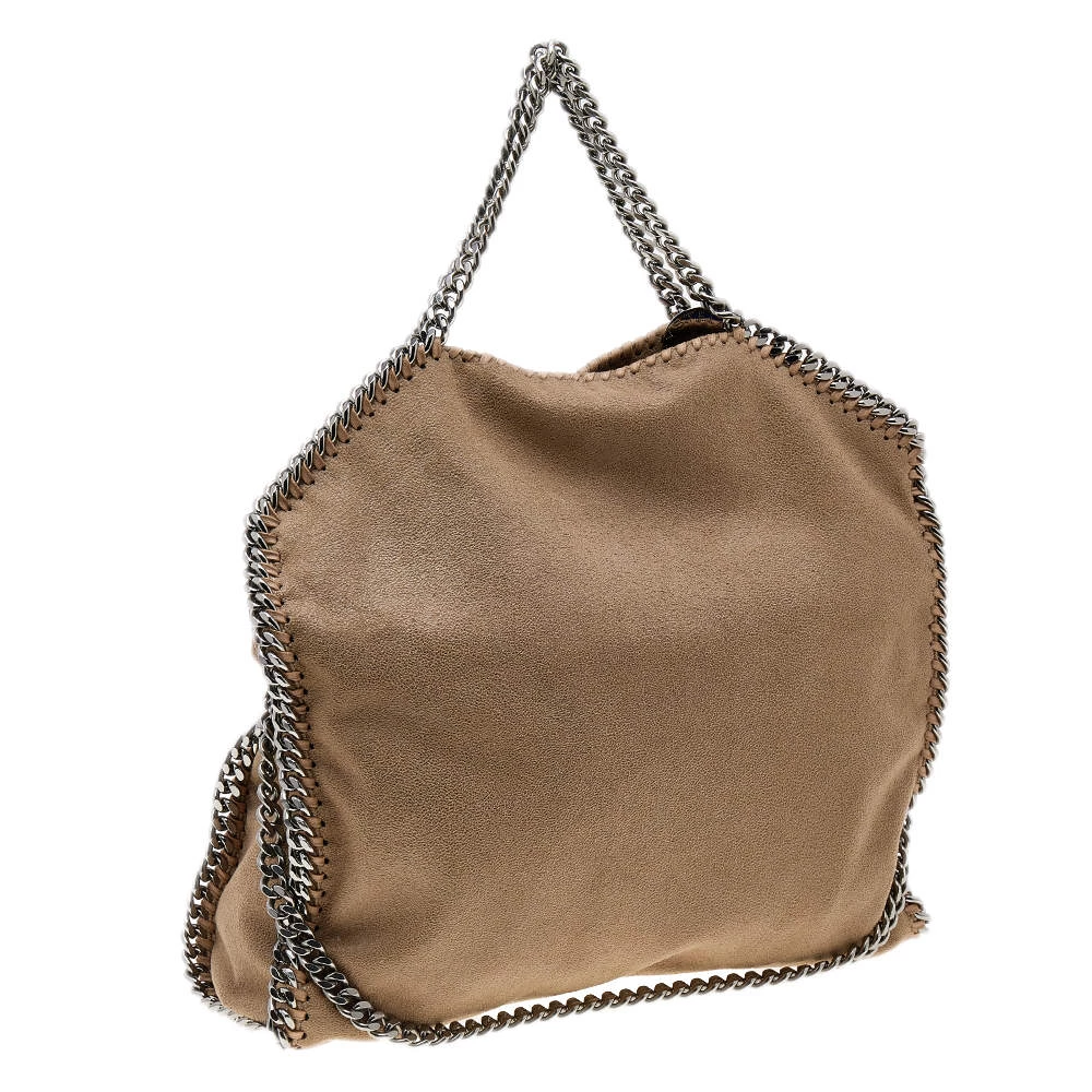 This Falabella tote from Stella McCartney is one of the most loved designs from the sustainably conscious label. This version is designed with beige faux leather. While the chain detailing elevate its beauty, the fabric-lined interior will dutifully hold all your daily essentials. You can swing this tote using the chain handles.