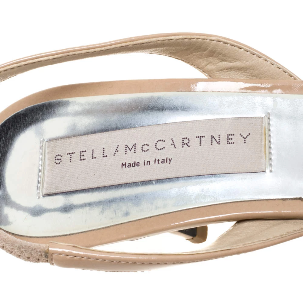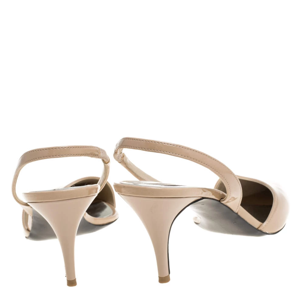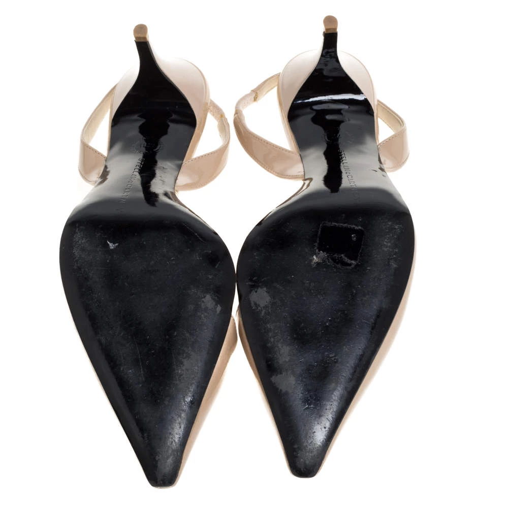 These lovely Stella McCartney pumps are ideal with formals as well as casuals. Crafted from beige faux patent leather, they are styled with pointed toes, 7.5 cm heels, and slingbacks. They are finished with faux leather-lined insoles for maximum comfort.