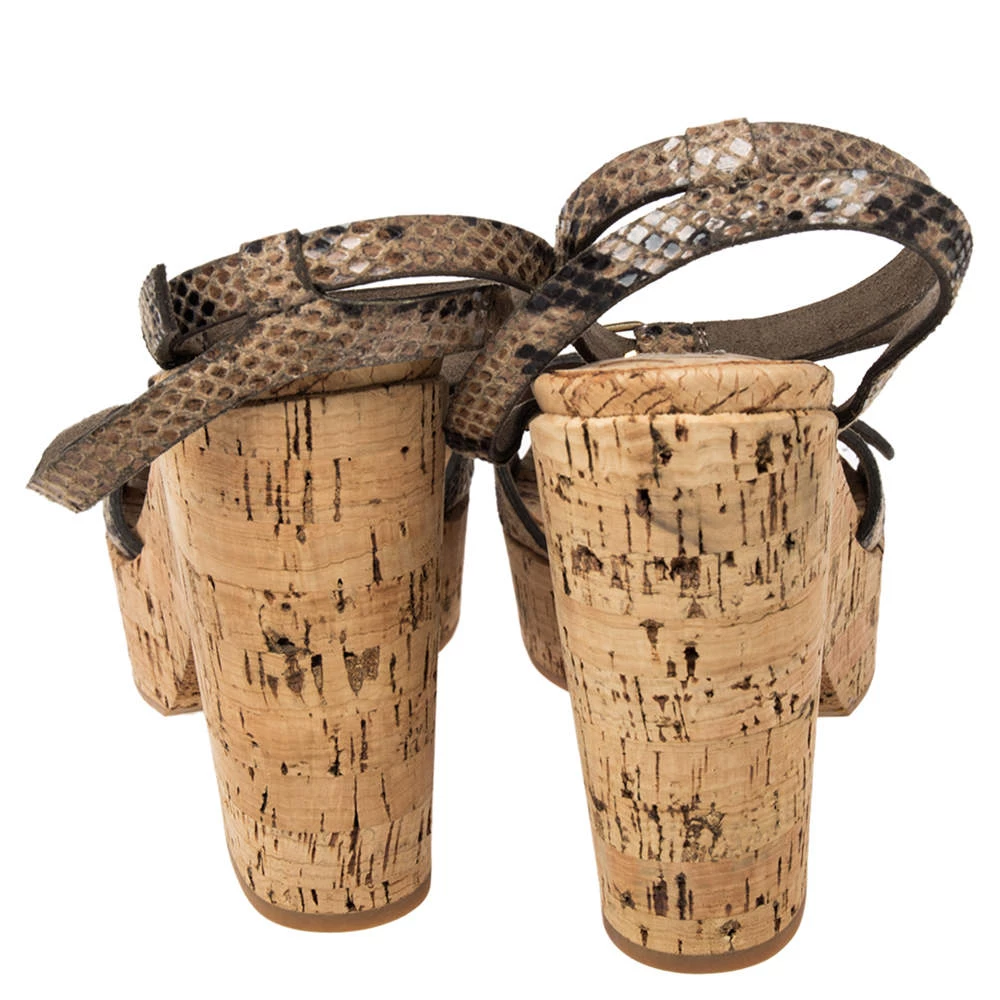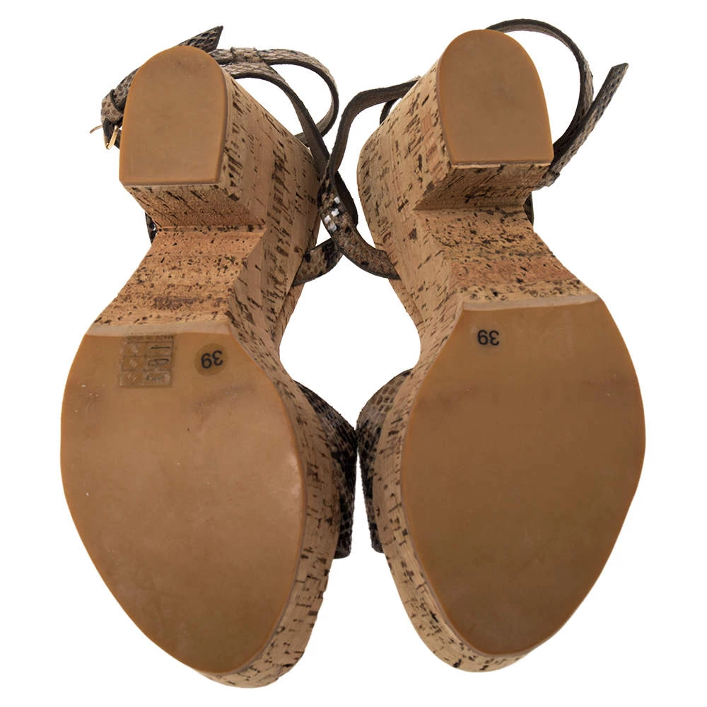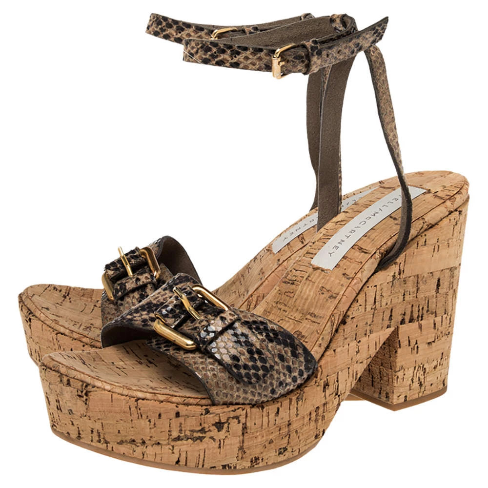The house of Stella McCartney brings you these impressive sandals that will complement a host of outfits. They have been crafted from python-effect faux leather and come in lovely shades of beige. They are styled with open toes, buckle detailing on the uppers, buckled ankle straps, platforms, and 11 cm cork heels.