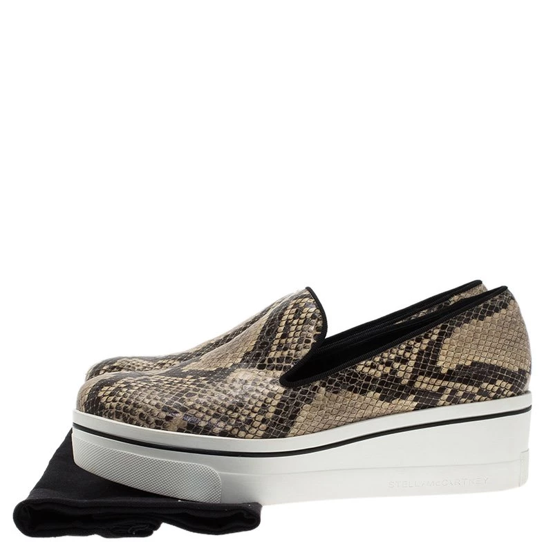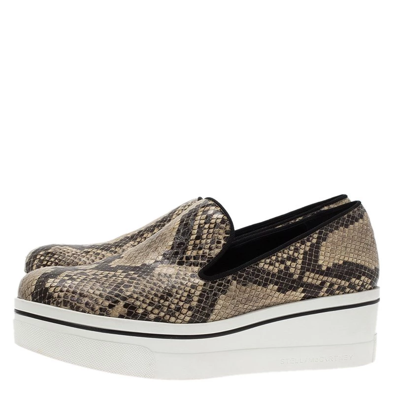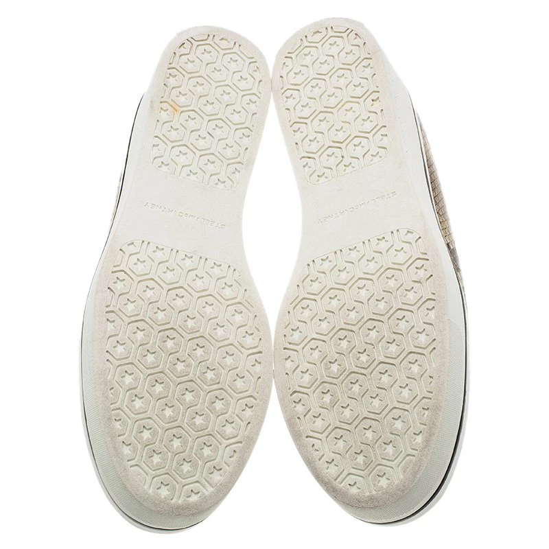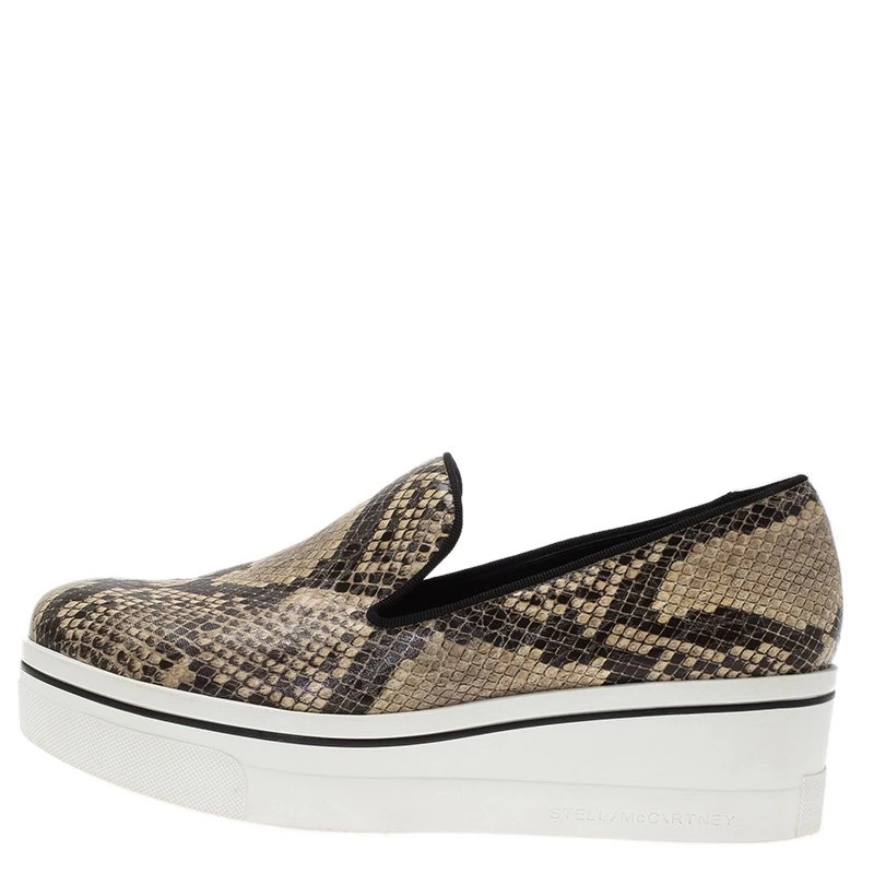These python print sneakers by Stella McCartney are a whole new version of the famed slip-on sneakers. It flaunts a snakeskin print in contrast of the rubber sole in white favouring more height. Save these beige sneakers for your casual off-duty looks.