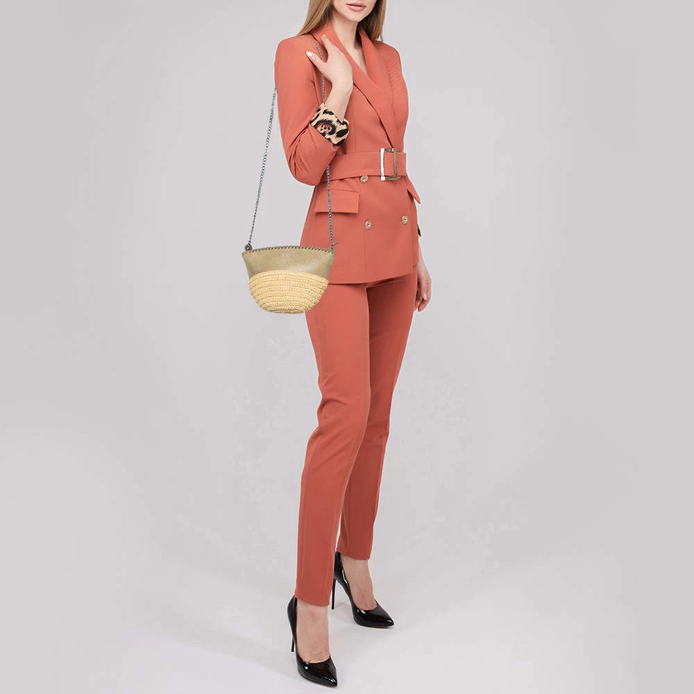 This Falabella bag from Stella McCartney will make the dream of countless women come true. Crafted from woven raffia and faux suede, it is durable and stylish with a paneled design. While the whipstitch detailing on the top elevates its beauty, the roomy interior will dutifully hold all your daily essentials. You are sure to make hearts skip when you swing this tote using the chain shoulder strap.