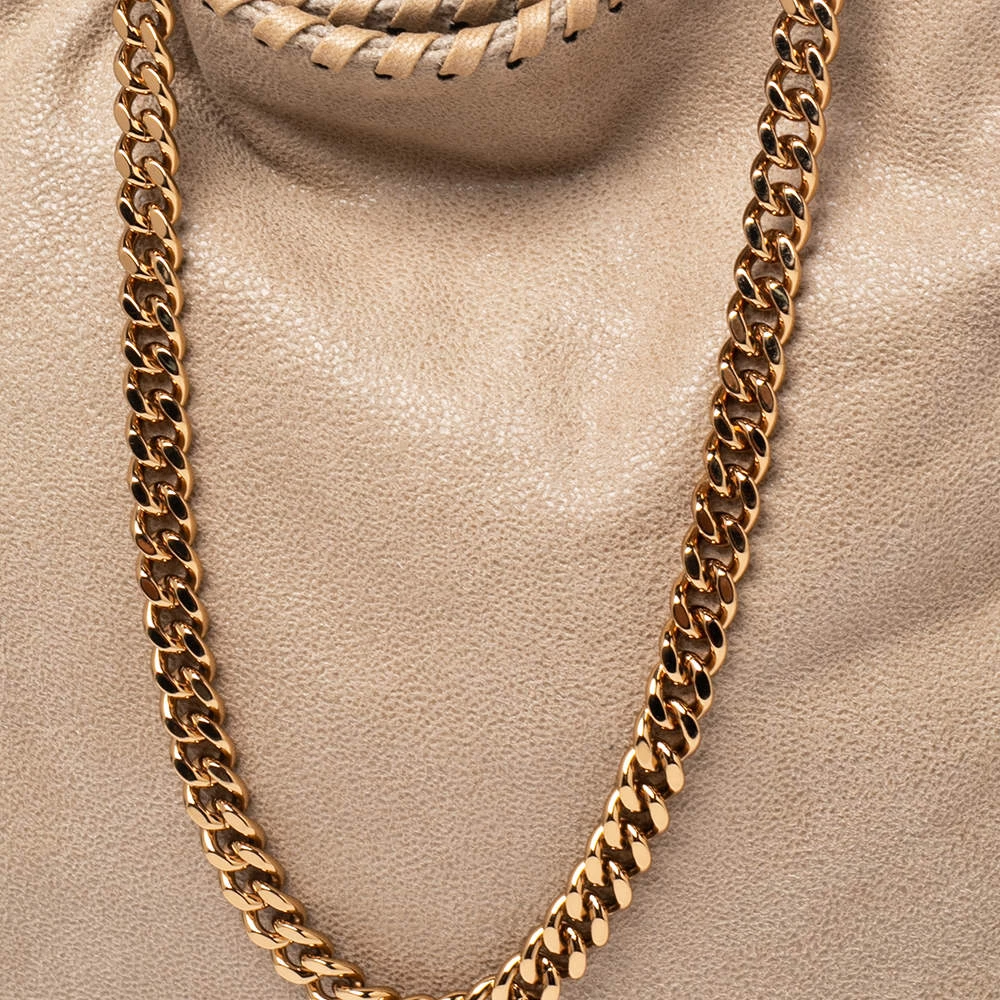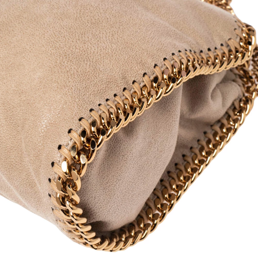 This mini Falabella tote from the House of Stella McCartney will make your dream of owning a lavish handbag come true. It is durable and stylish in its structure. It has been made using metallic beige faux suede on the exterior and features a gold-toned chain detailing.