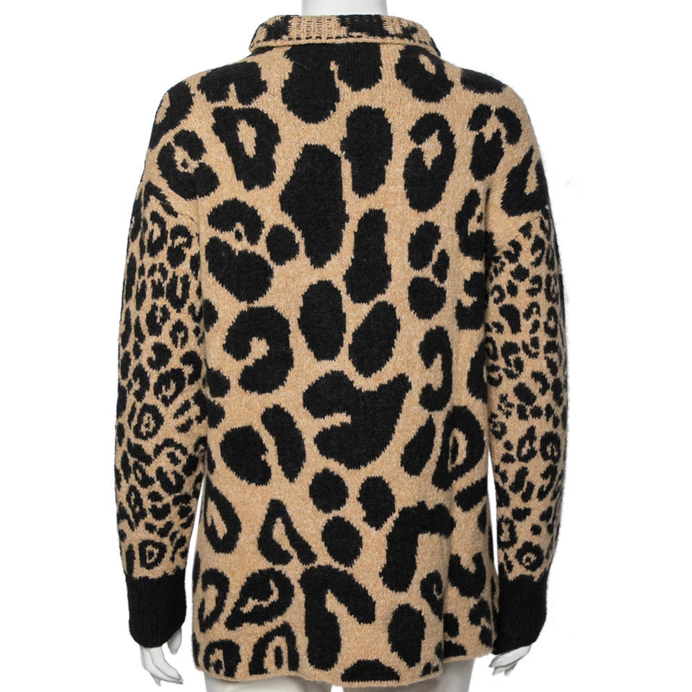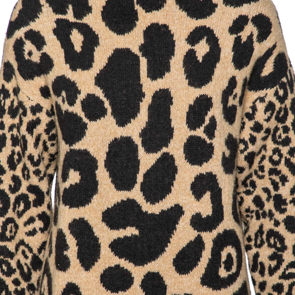 This beige women’s sweater from Stella McCartney is a perfect amalgamation of comfort and style. This intarsia knit creation in a cotton blend is highlighted with leopard prints. Pair this designer long-sleeved sweater with your favorite pants and boots!