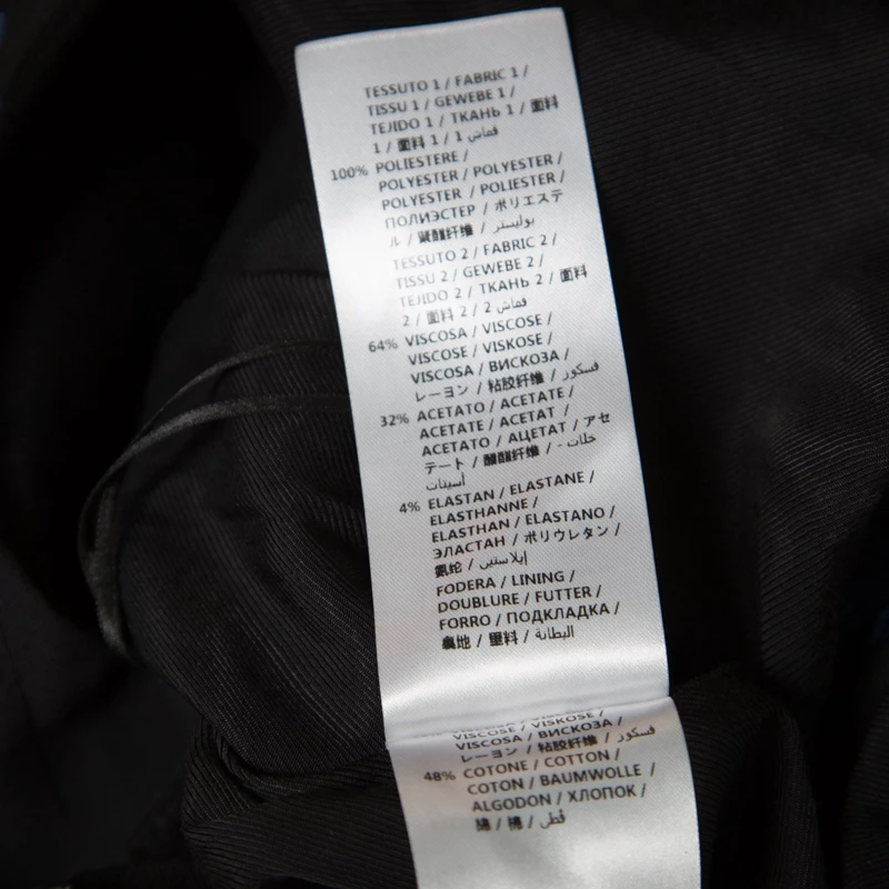 - Fabric: Fabric A: 100% Polyester; Fabric B: 64% Viscose, 32% Acetate, 4% Elastane ( Lining: 52% Viscose, 48% Cotton )