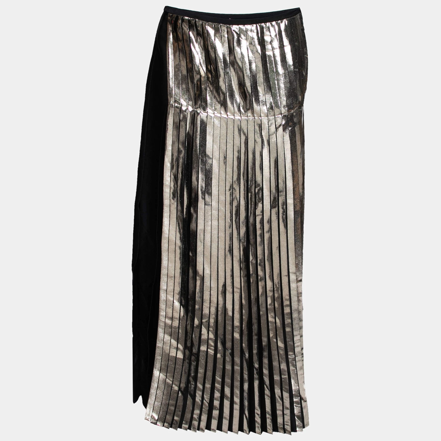 This Carmen skirt from the House of Stella McCartney speaks all about glitz and glam! Fashioned in black and gold crepe fabric, this skirt is highlighted beautifully with pleated formations on the front. It comes with a zipper fastening. Let your evening attire be on point with this superb Stella McCartney creation.