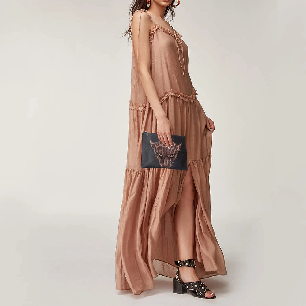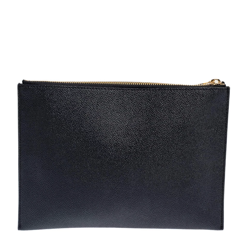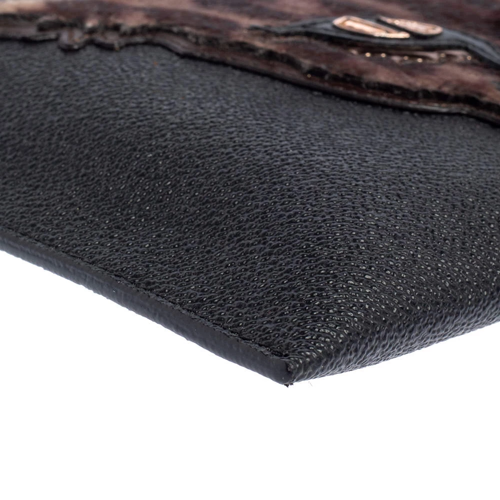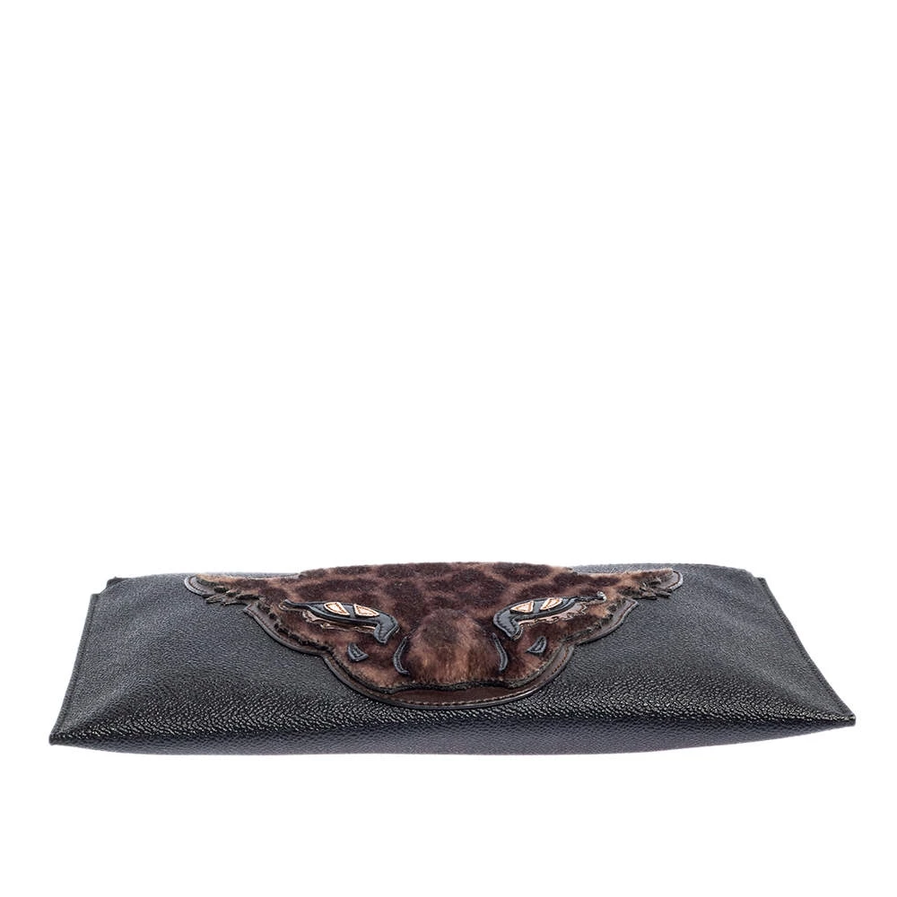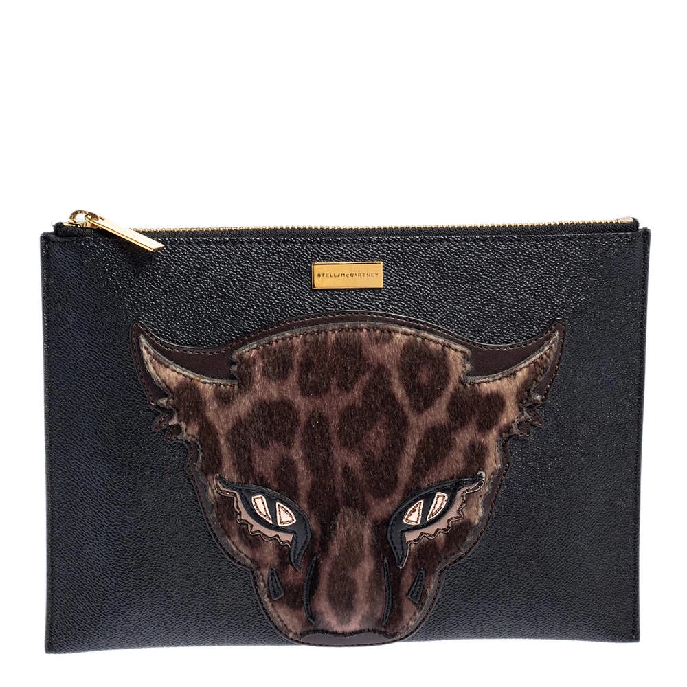 This stylish clutch from the house of Stella McCartney has been crafted from faux leather in a simple black shade. It has a calf-hair leopard patch on the front for a distinct update. The women’s designer clutch is complete with a lined interior to hold your essentials.