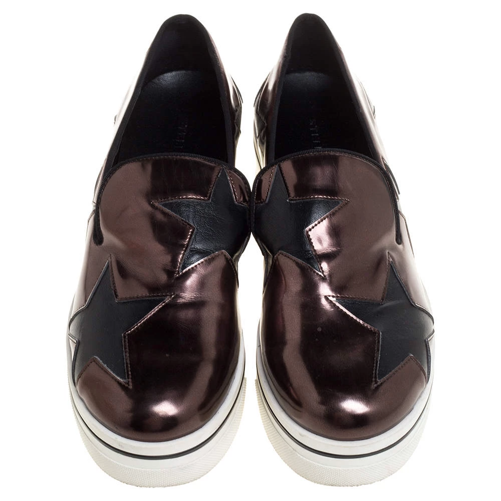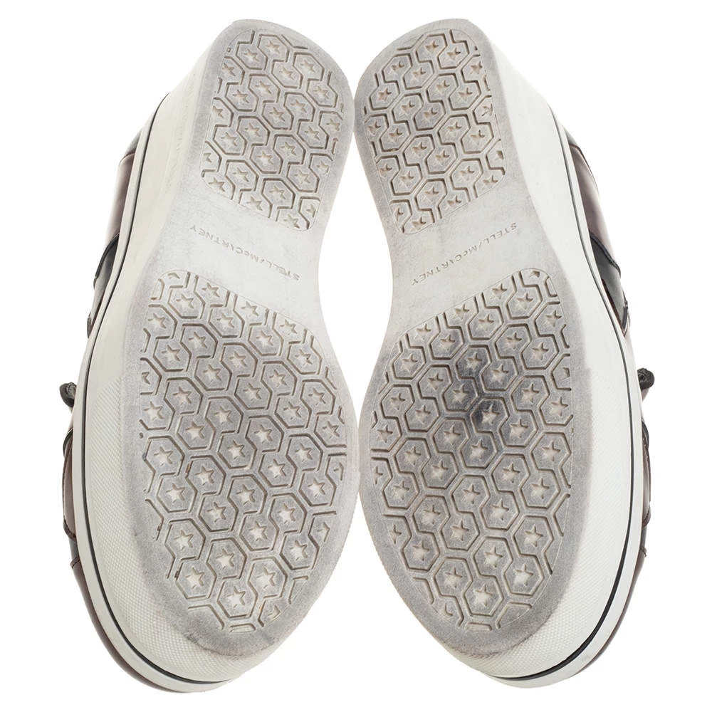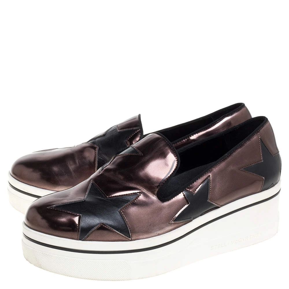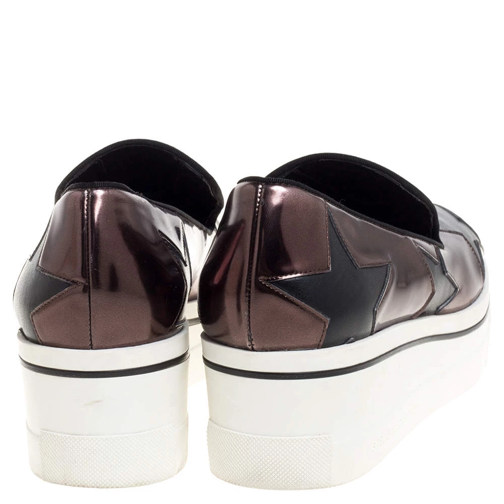 Stella McCartney Black/Brown Faux Leather Binx Star Platform Slip On Sneakers Size 38 For Women