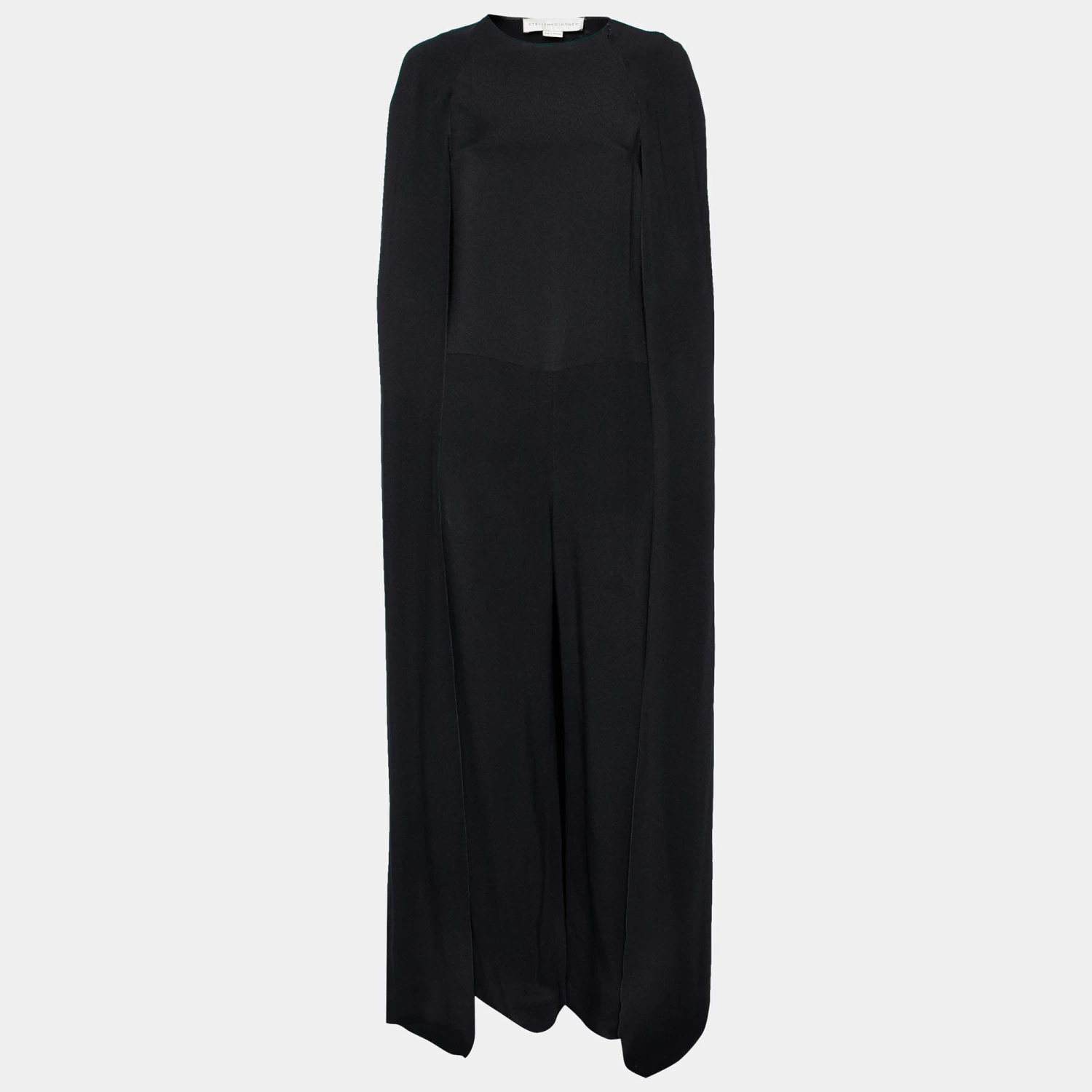 Stella McCartney brings to you this superbly crafted jumpsuit that is meant for special occasions. The black creation has a simple silhouette that is highlighted with a beautiful cape at the back which will earn you compliments for sure. Accessorize with statement jewelry and high heels for a glamorous appeal.