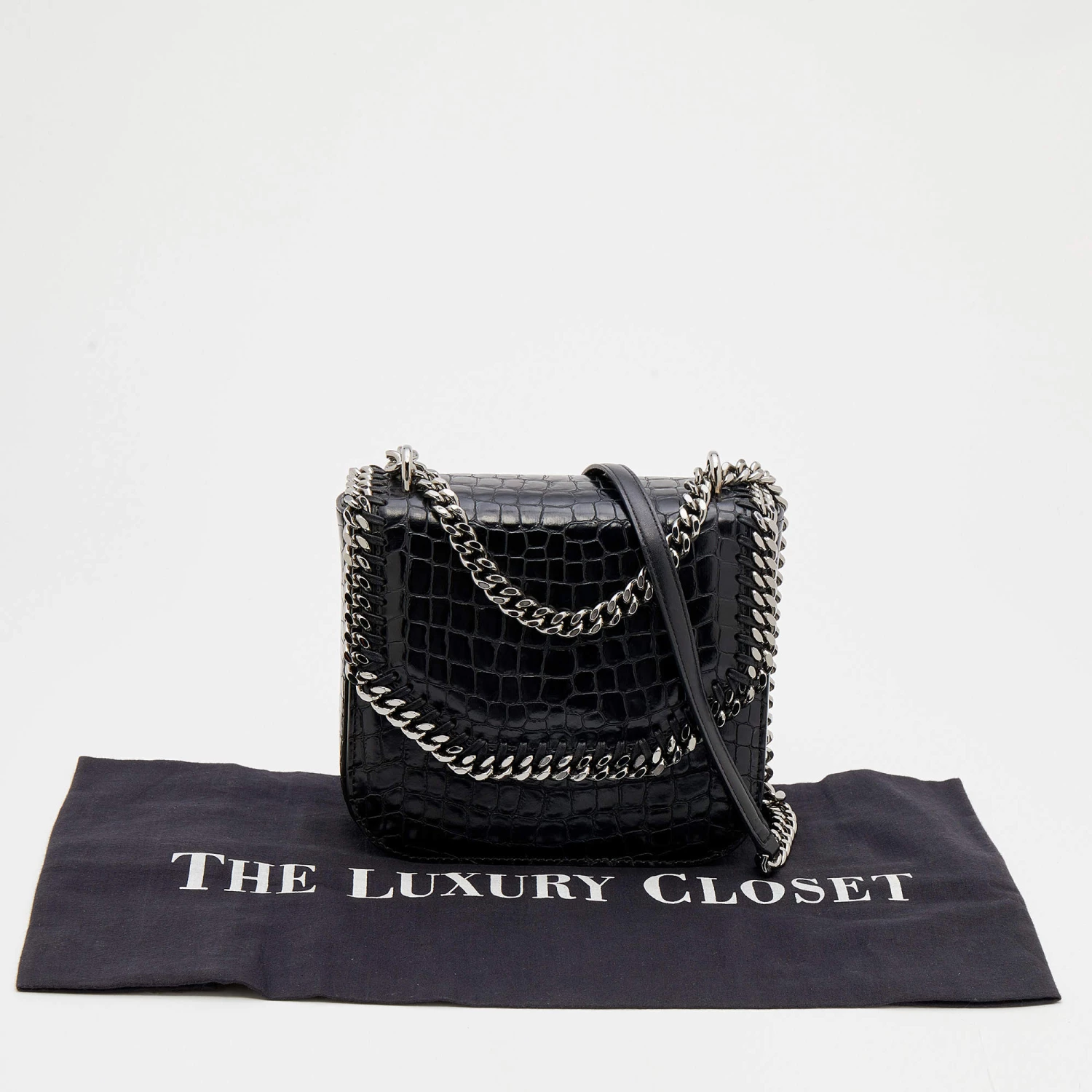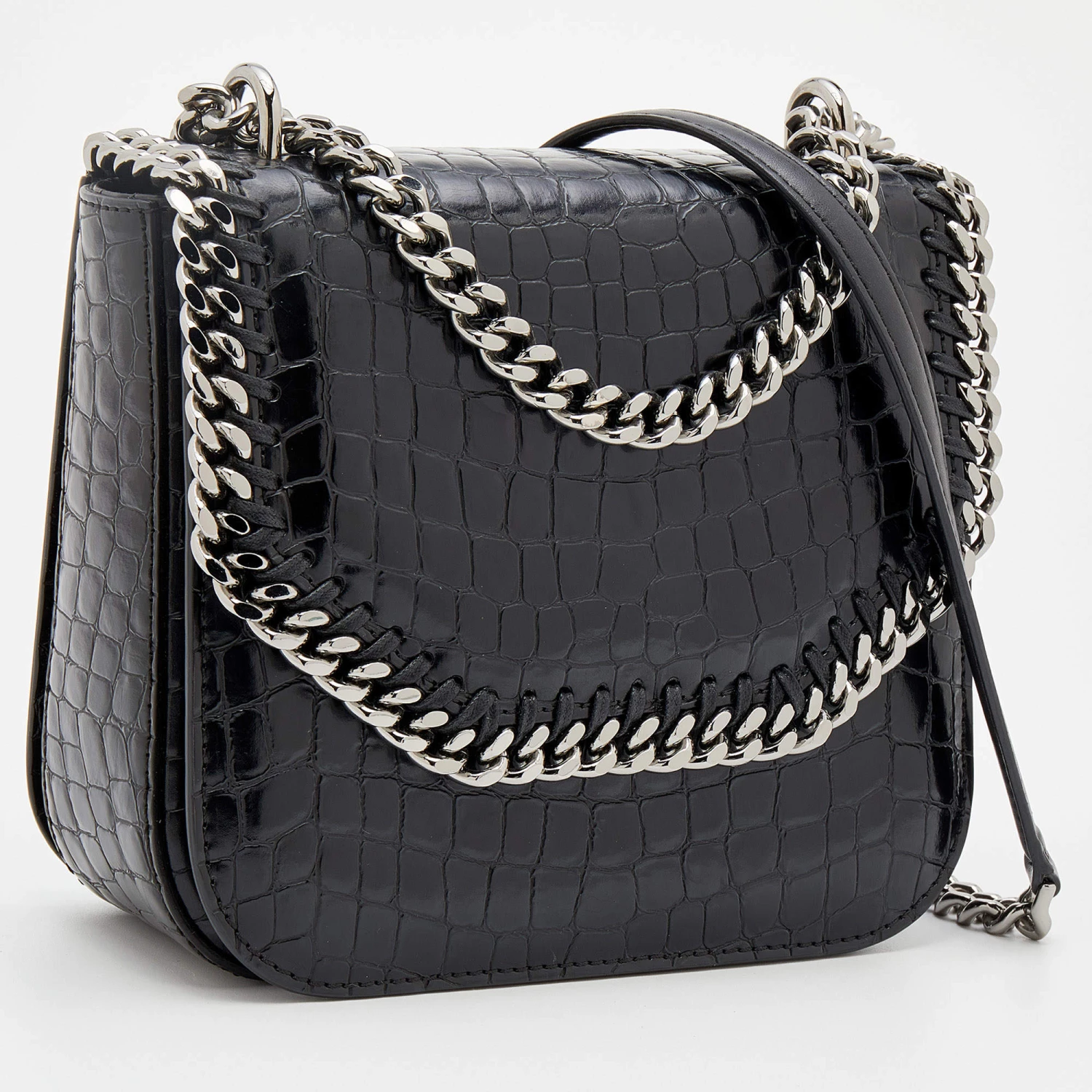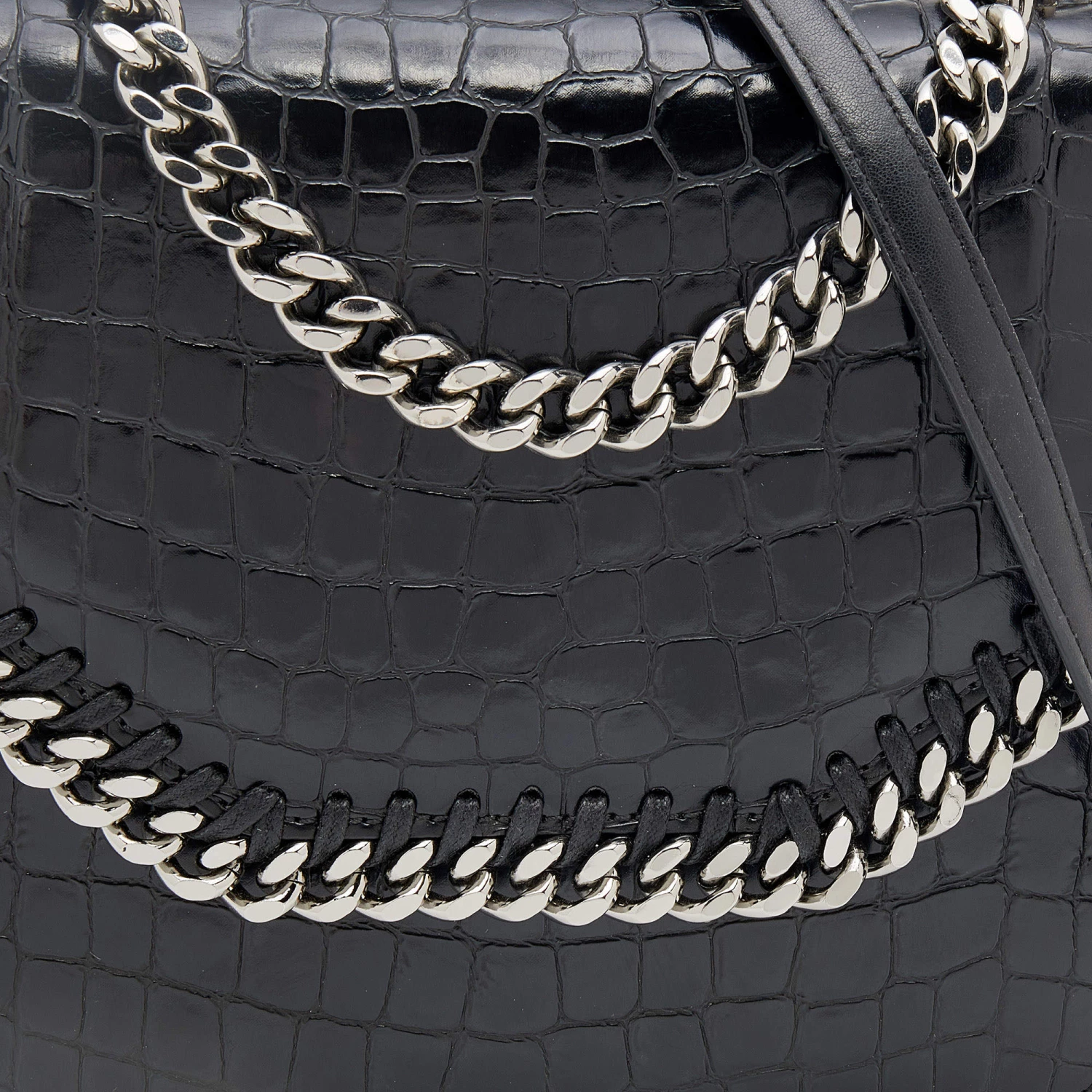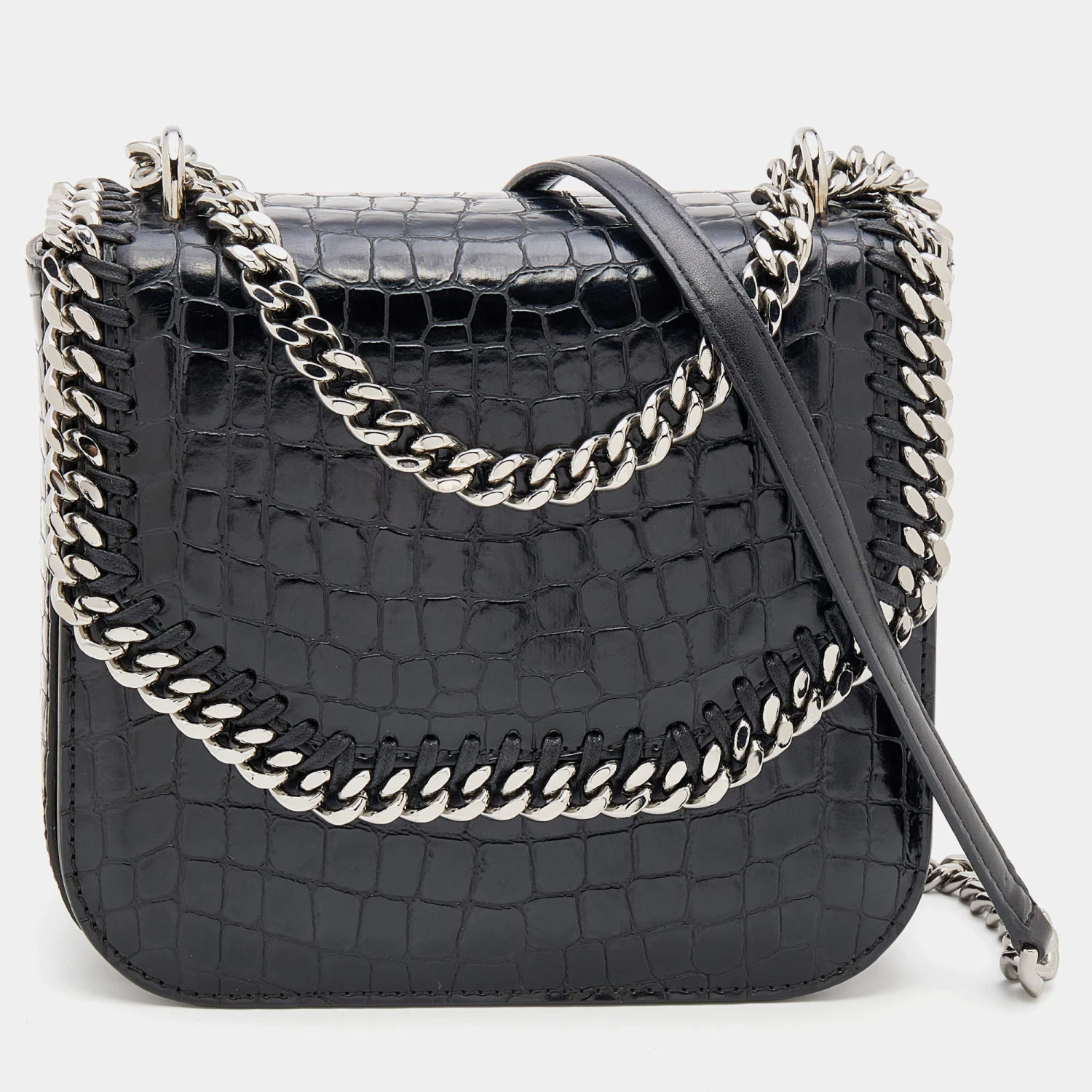 Stella McCartney Black Croc Embossed Faux Leather Medium Falabella Star Box Bag For Women