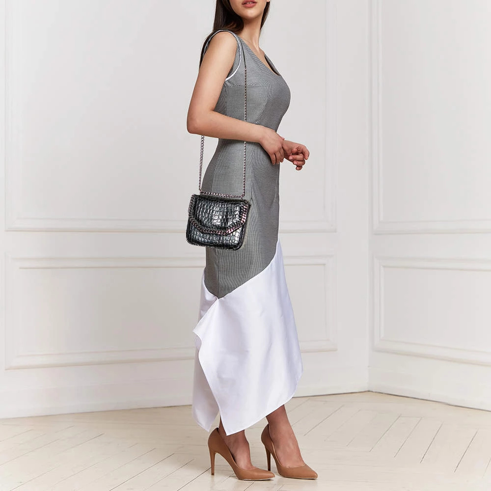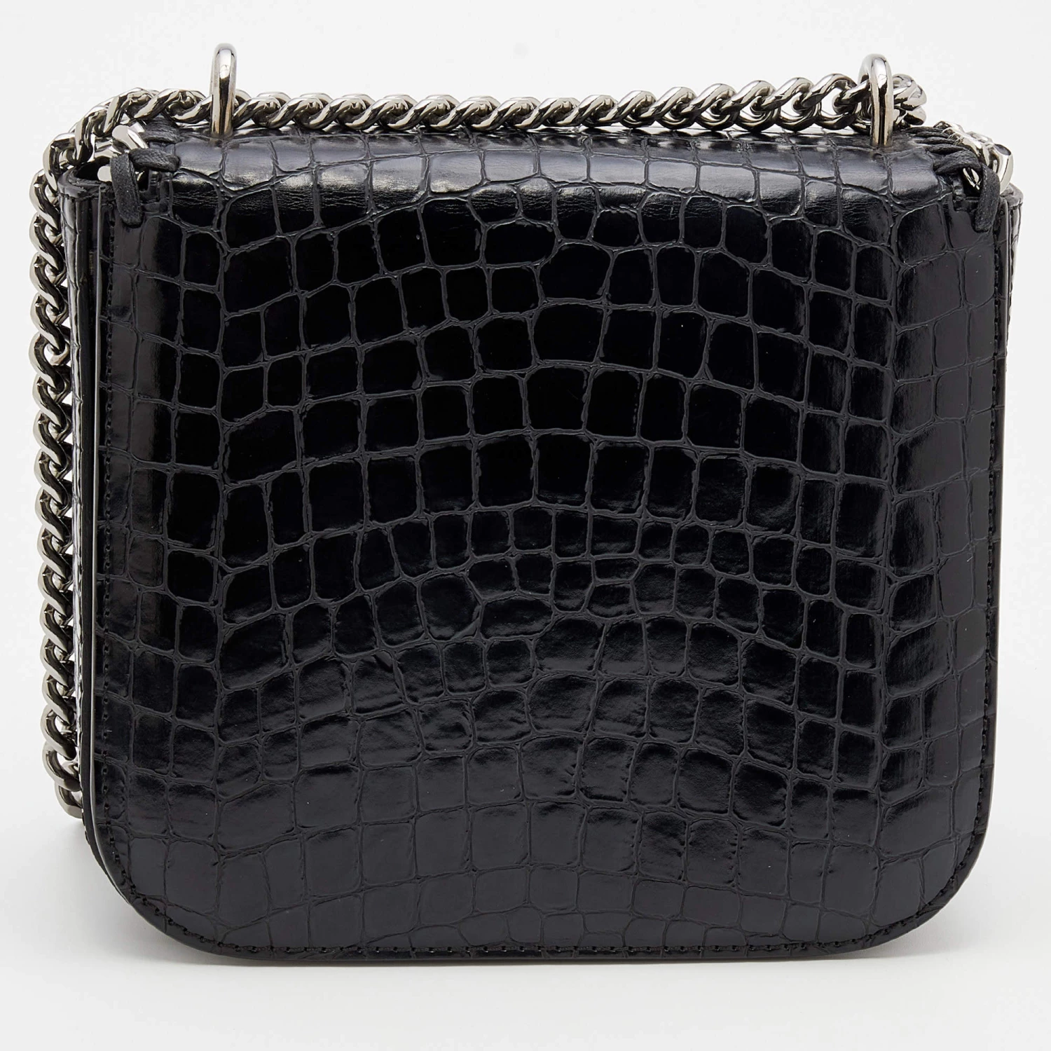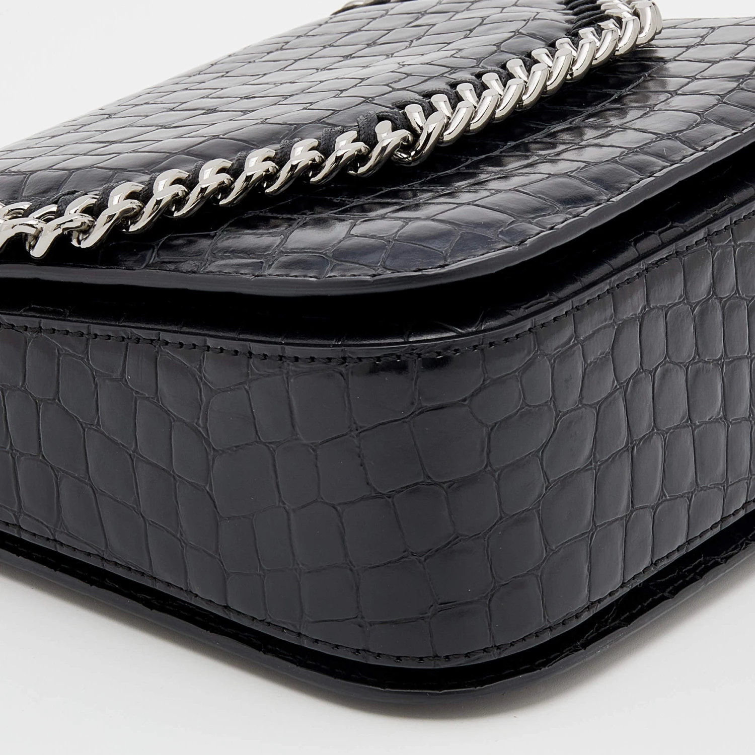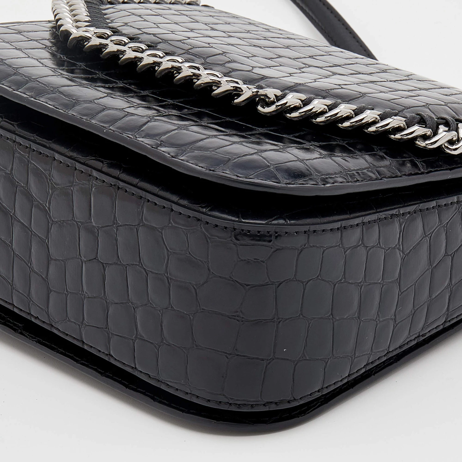 Stella McCartney Black Croc Embossed Faux Leather Medium Falabella Star Box Bag For Women