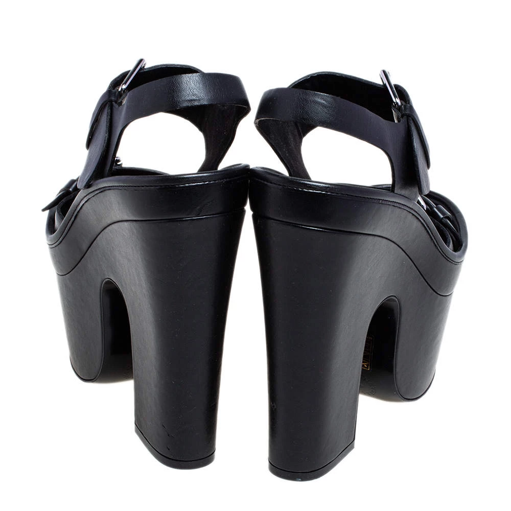 You are sure to feel your stylish best every time you step out in these sandals from Stella McCartney! Beautifully designed with faux leather, they present a gorgeous appeal. The black pair carries open toes, buckled straps, platforms, and block heels. These sandals are perfect for the edgy fashionista in you!