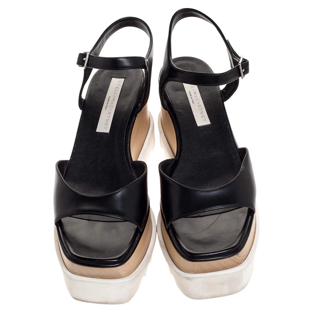 Wear these stylish sandals from the house of Stella McCartney and channel your inner fashionista. Keep it light and casual in these sandals crafted from faux leather. They come in black and features open square toes. They are styled with creeper platforms, buckled ankle straps, 8 cm heels and silver-tone hardware.