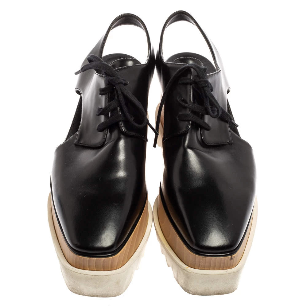 Stella McCartney showcases exquisite style and design with these black platform shoes. They are brimming with details like the shoelaces on the faux leather exterior, the slingbacks, and the cut-outs. Grab this pair today and flaunt it on casual outings!