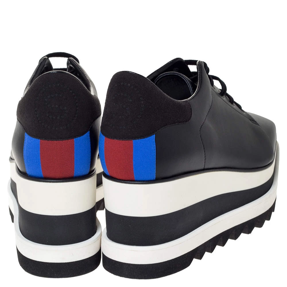 Stella McCartney sings of her high style and unique fashion taste with these Elyse sneakers. They are brimming with exquisite details like the black faux leather exterior, the laces, and the thick, striped platforms. Grab this pair today and let it help you express your fabulous style.