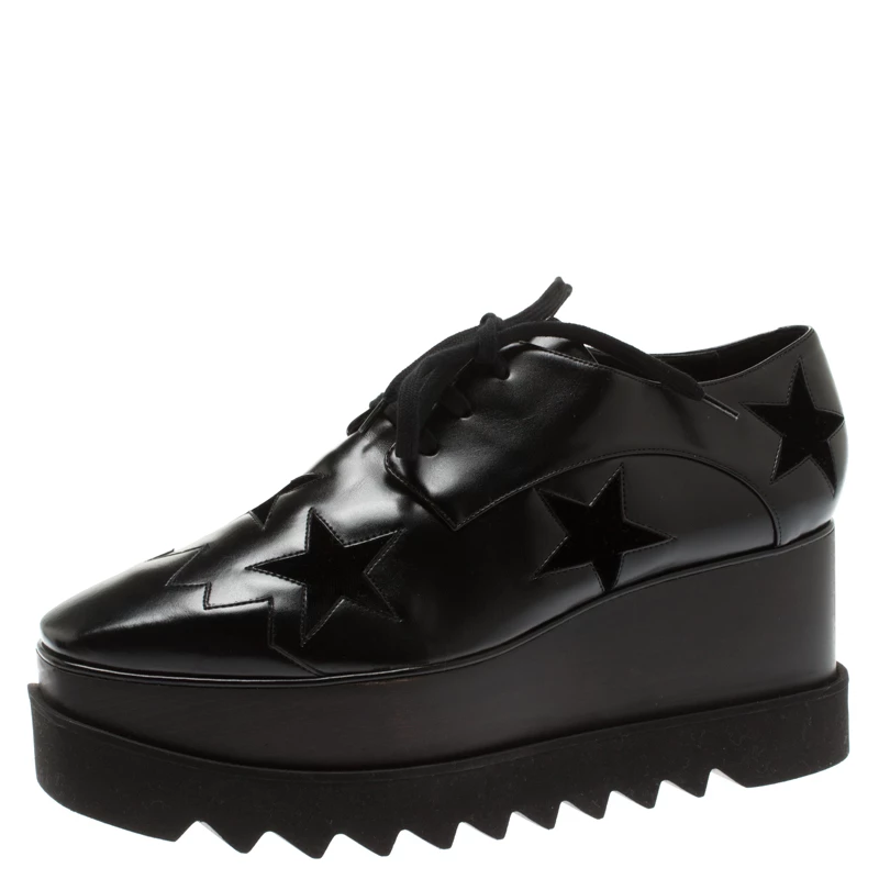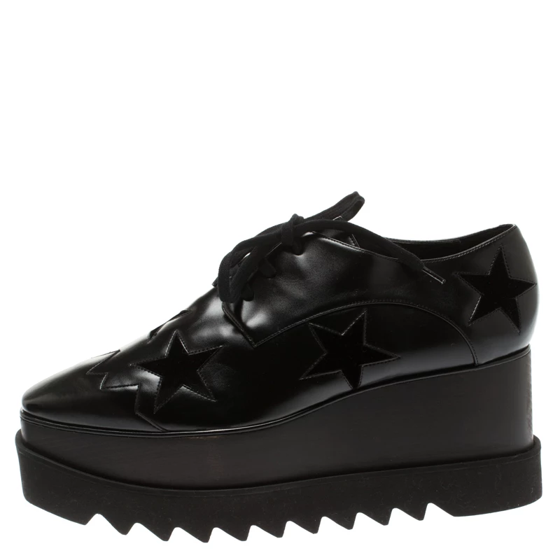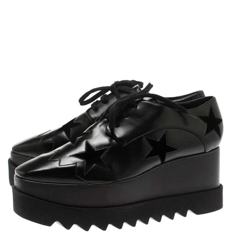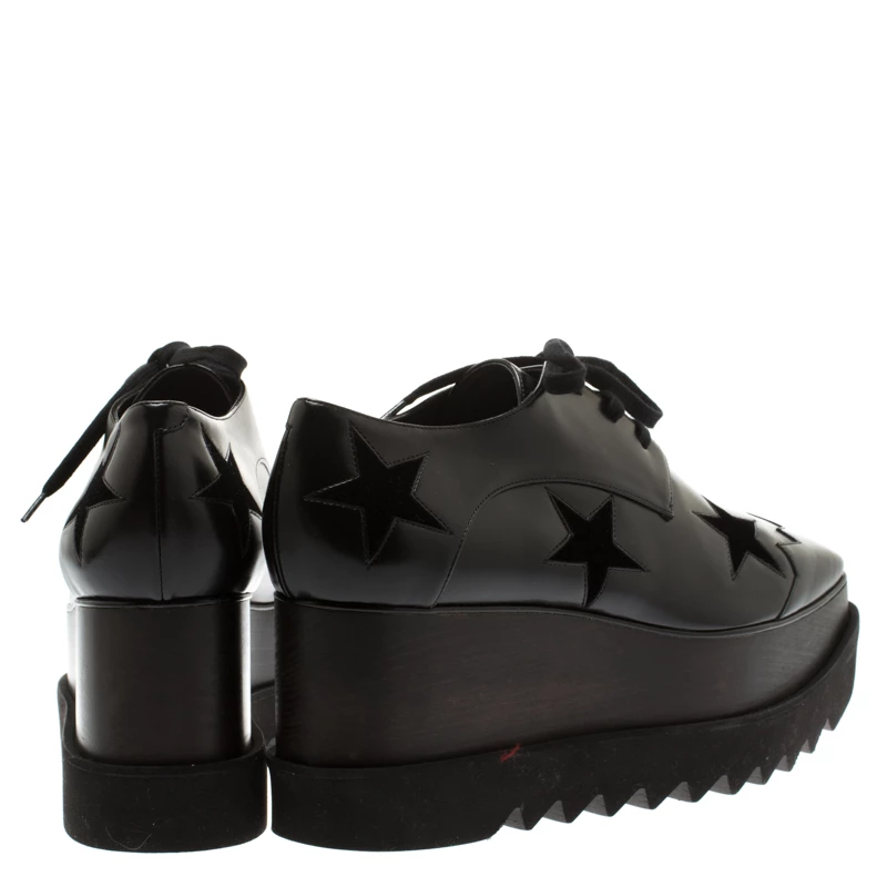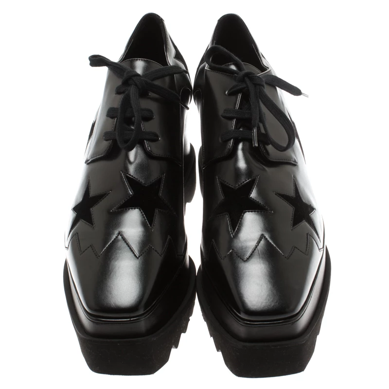 Stella McCartney proves her high style and unique fashion taste with these Elyse derby shoes. They are brimming with exquisite details like the velvet star details on the faux leather exterior, the laces, and the thick platforms. Grab this pair today and let them help you express your fabulous style.