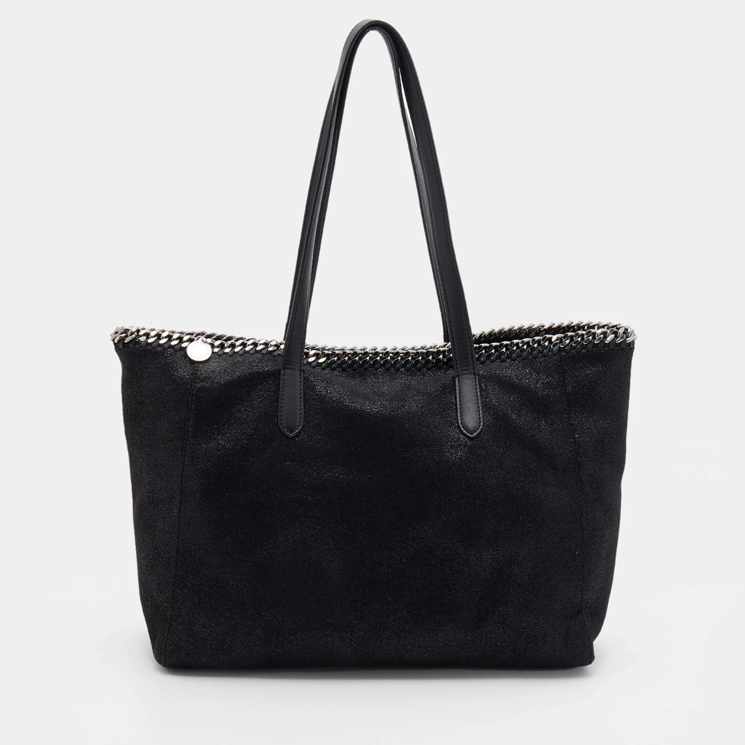 Stella McCartney Black Faux Leather Falabella East West Shopper Tote For Women
