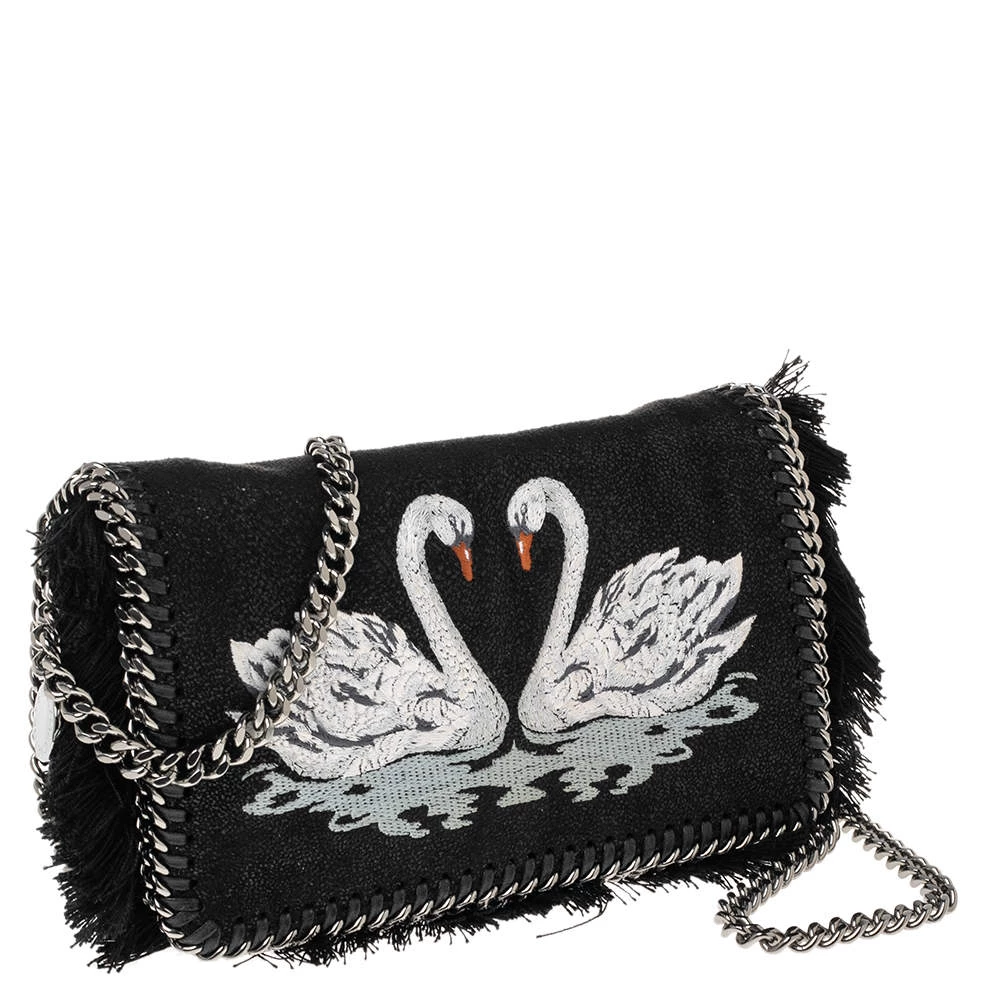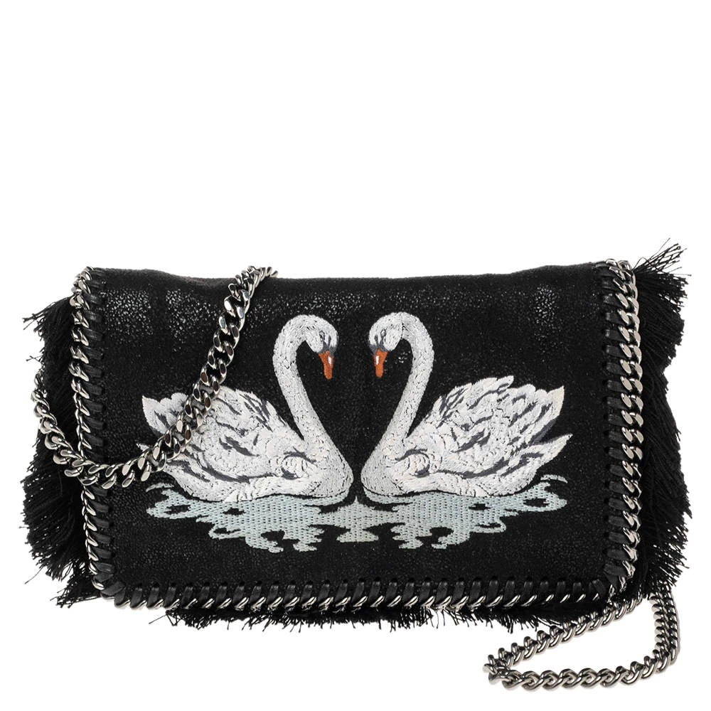This Falabella flap bag from Stella McCartney is a beauty. Crafted from swan detailed faux leather, it is durable and stylish. While the chain detailing elevate its beauty, the fabric-lined interior will dutifully hold all your daily essentials. You are sure to make hearts skip when you swing this bag using the chain link.