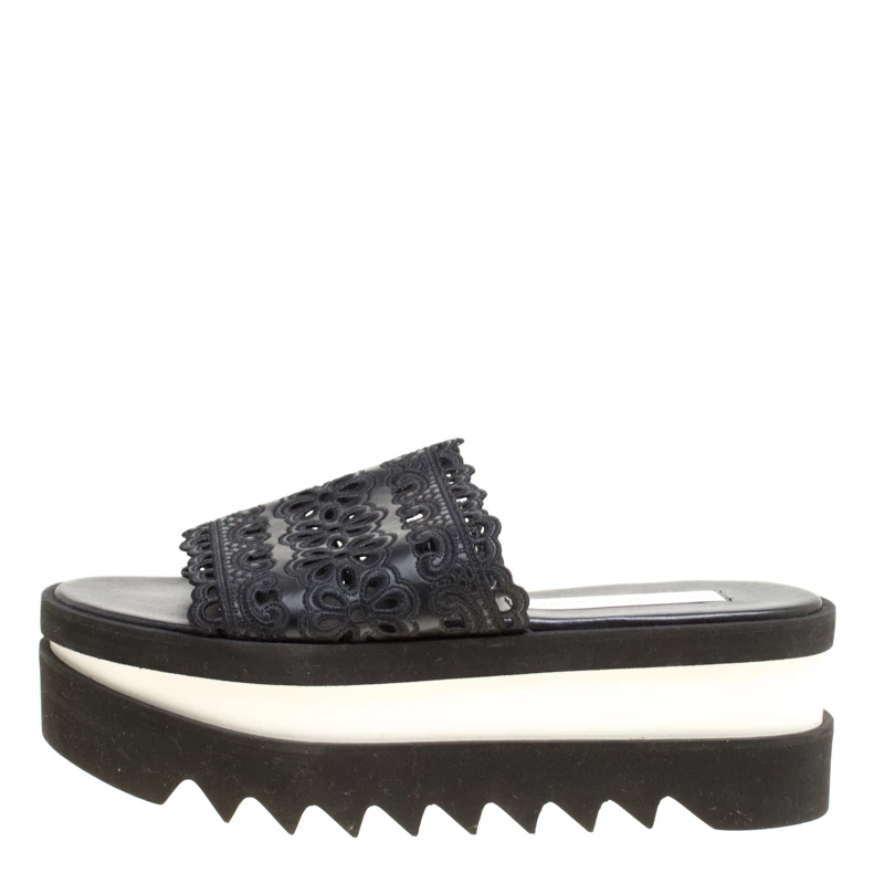 Wearing Stella McCartney just gives one a soothing feeling because of the fact that her designs are all high-fashion and eco-friendly. From her very famous label, comes this pair of slides that are made from faux leather, and styled with floral eyelet embroidery and high platforms set in a modern way.