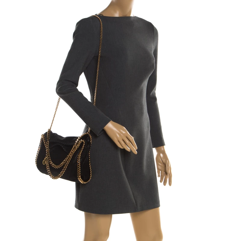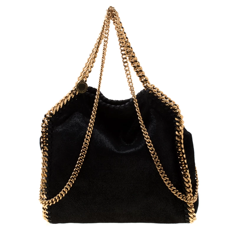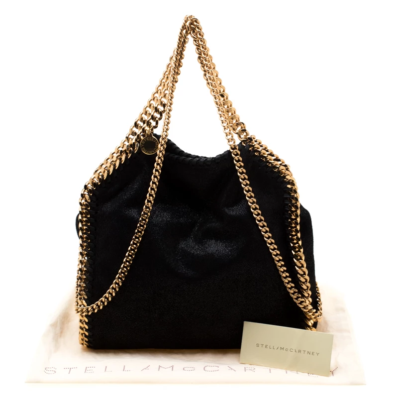 Stella McCartney Black Faux Leather Mini Falabella Shaggy Deer Tote For Women