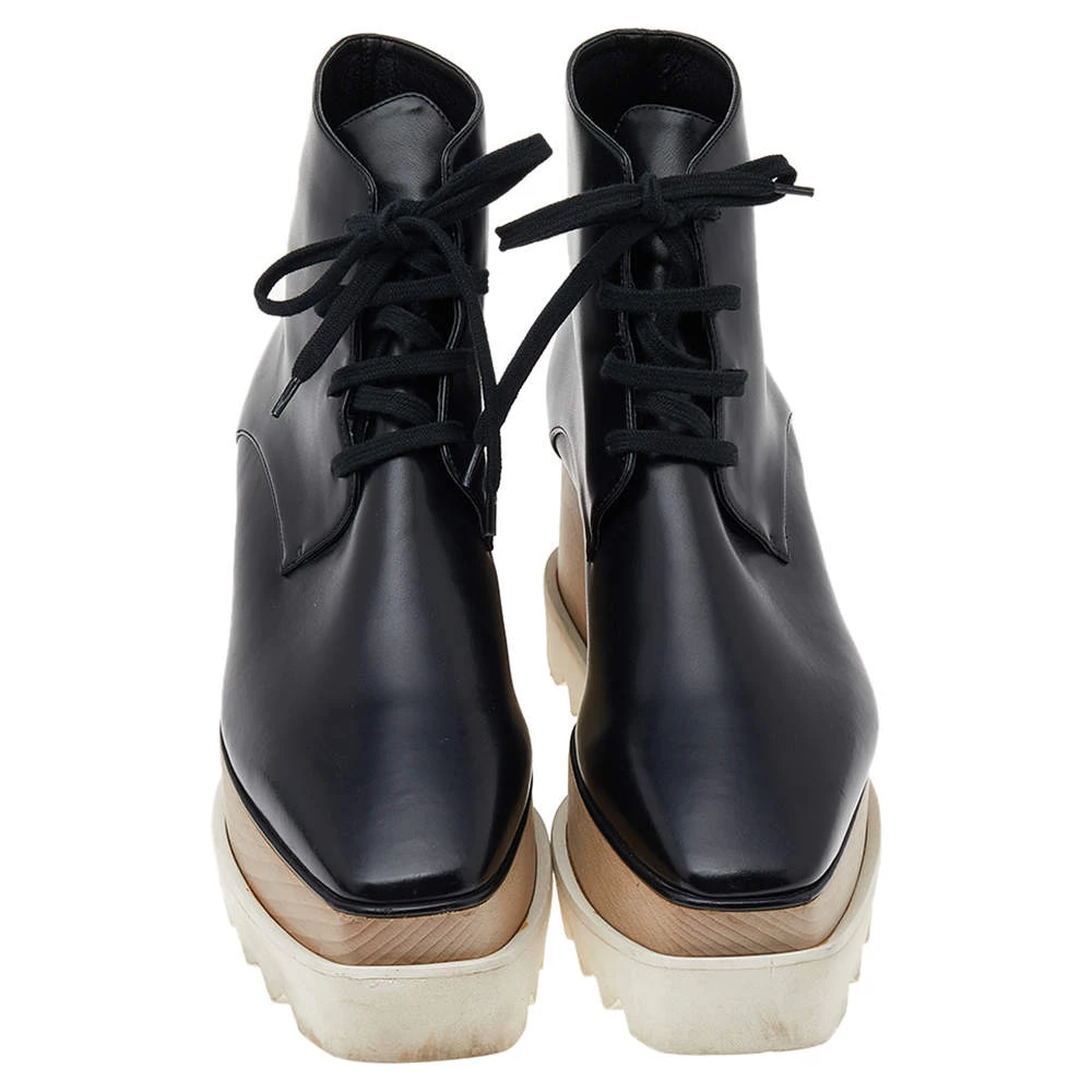 Strong, sturdy, and fashionable, these ankle boots by Stella McCartney are everything you need to edge up! Made from faux leather, they feature round toes and lace-ups on the uppers. The platform and heels are designed for extra traction. The insoles are leather-lined.