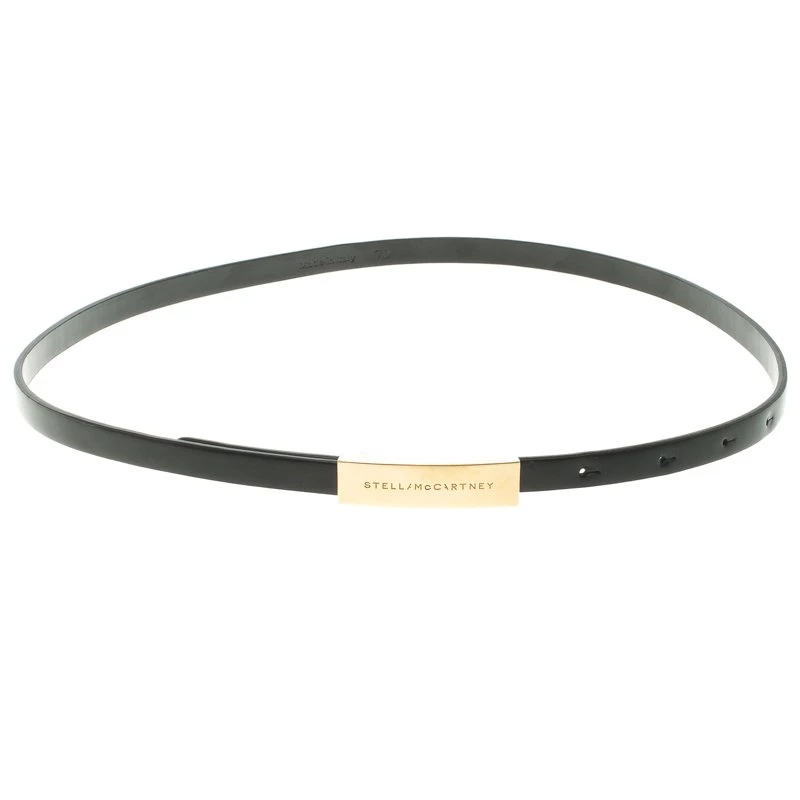 This skinny belt from Stella McCartney is a creation you’ll love to own. Crafted in Italy from faux leather, it flaunts a lovely black hue and is complete with a gold-tone buckle flaunting the label.