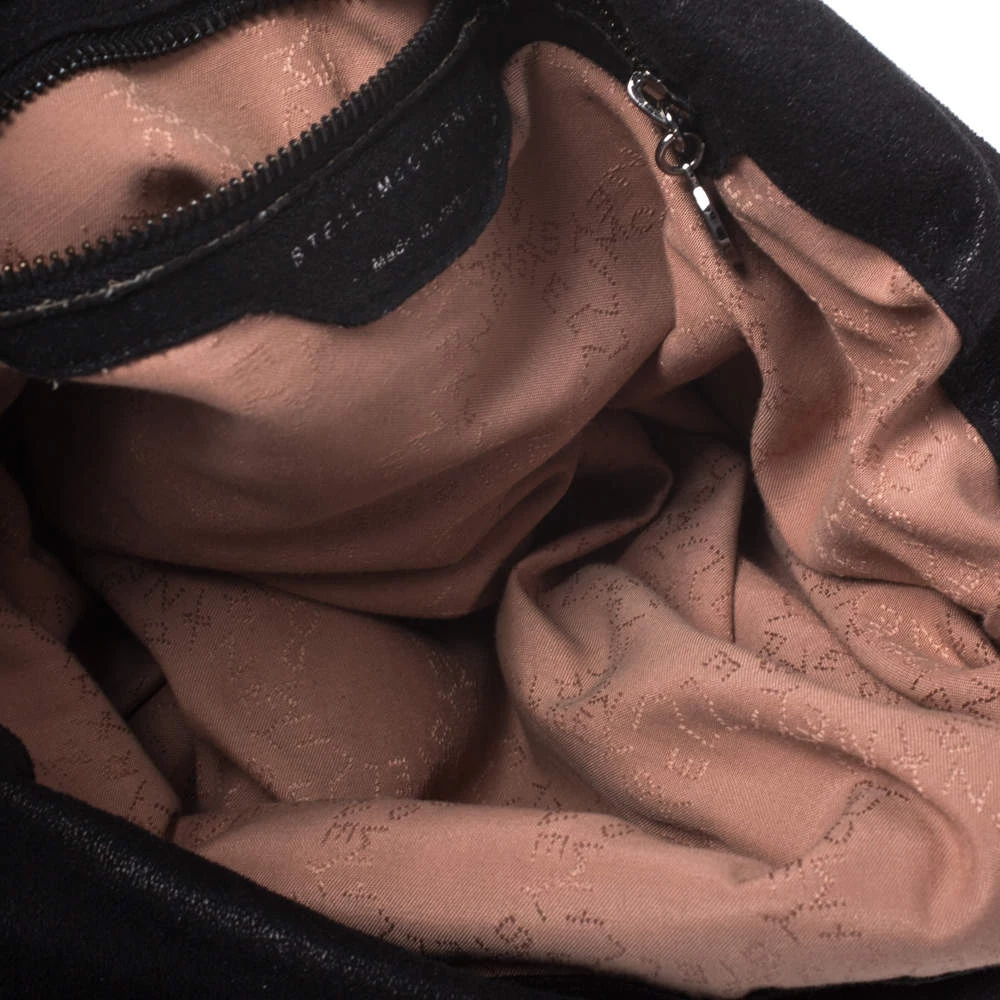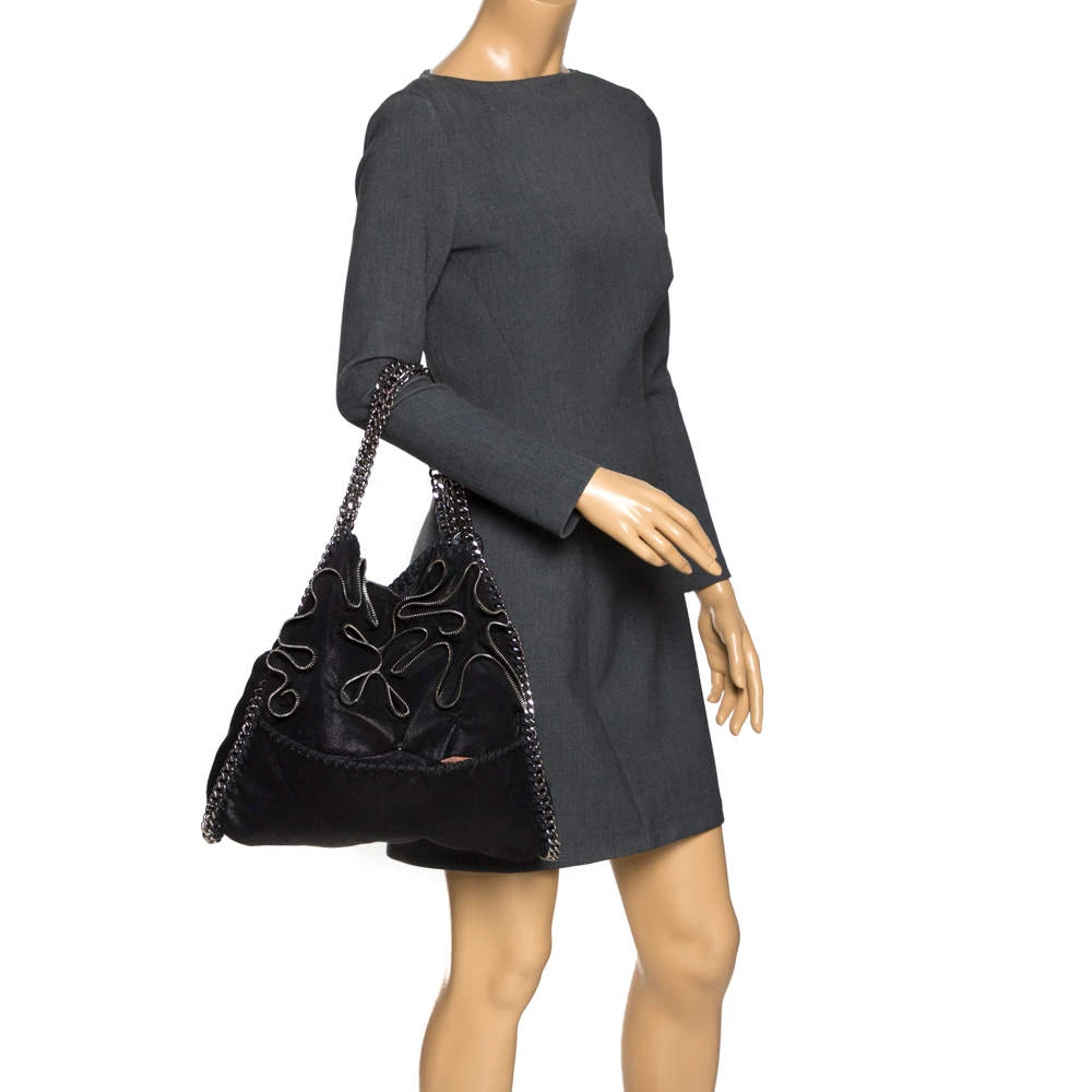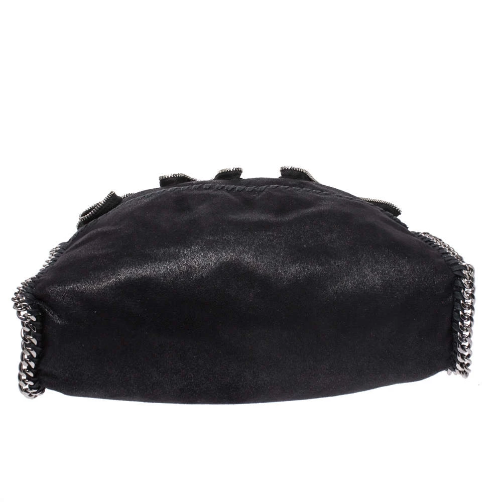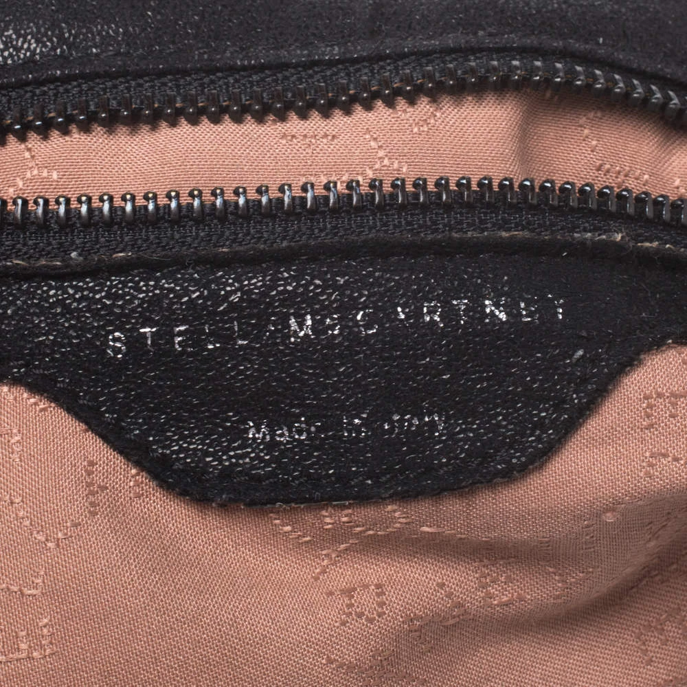 This Falabella tote by Stella McCartney has a unique twist with its zipper design detailing on the front. Crafted in quality black faux leather, the whipstitched chain trim in silver-tone looks edgy. The trim extends to form the chain strap and double handles which add to its overall look.