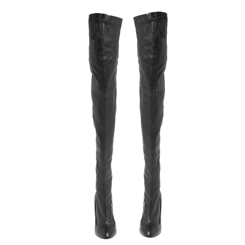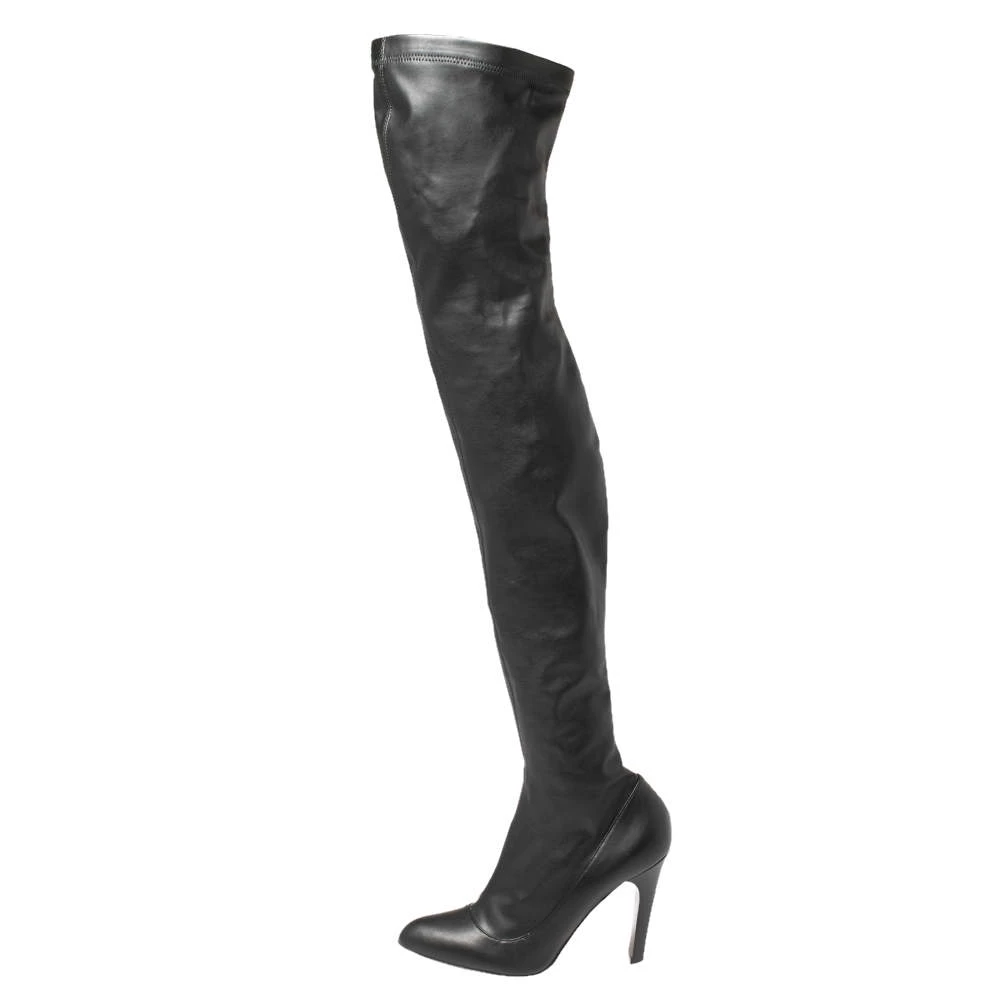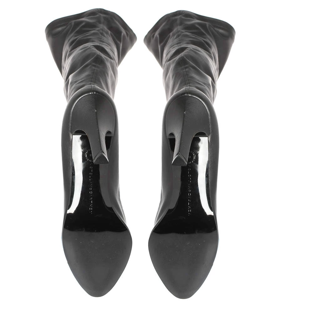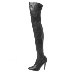 If the quest was for a pair of statement boots, we’d gladly choose these by Stella McCartney. They are crafted from faux leather as thigh-high and designed with covered toes, platforms, and 10.5 cm heels. The black-hued boots are simply high-fashion.