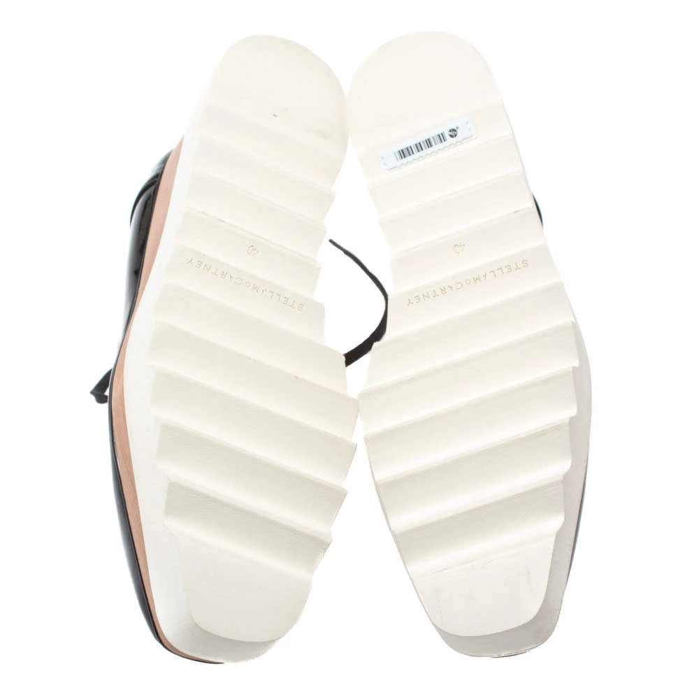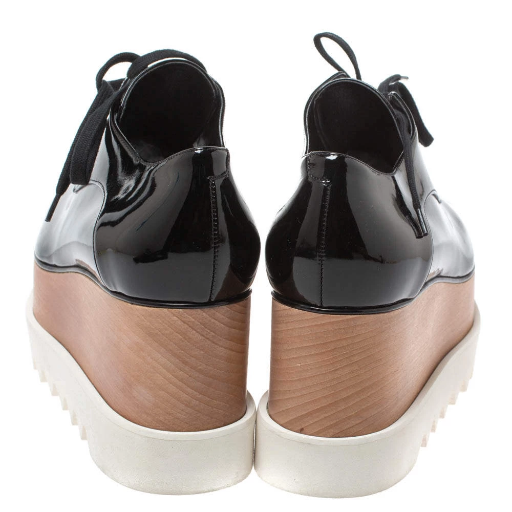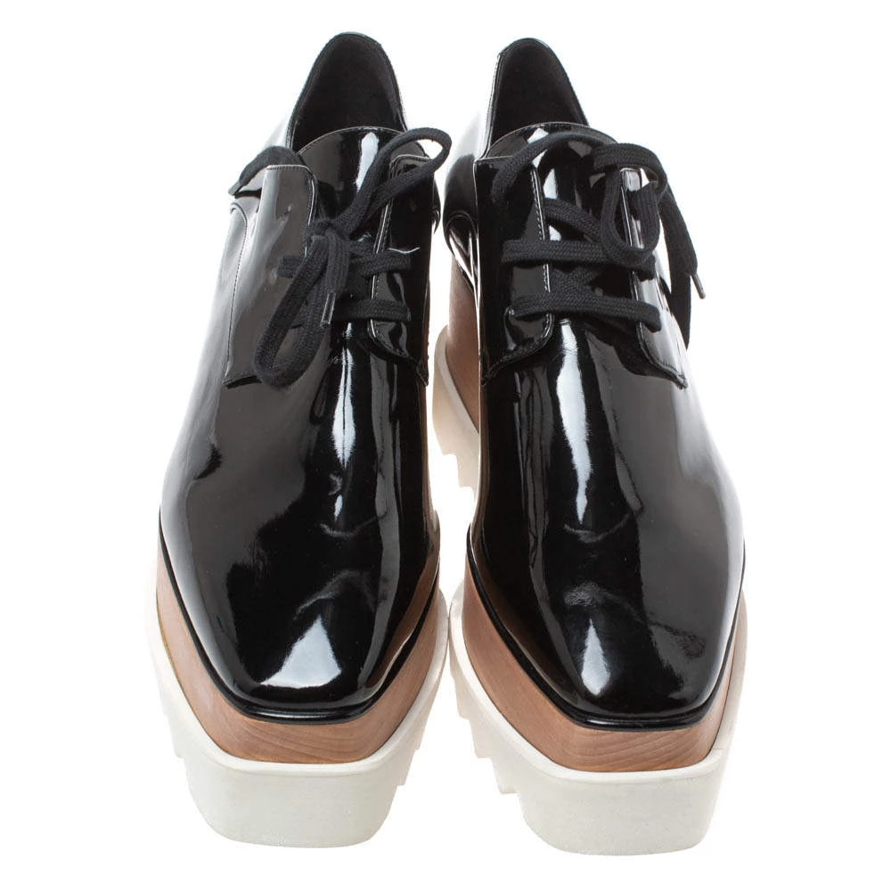 Stella McCartney exudes her high style and unique fashion taste with these black Elyse sneakers. They are crafted from faux patent leather and styled with square toes, lace-ups on the vamps, and thick platforms. Grab this pair today and let it help you express your fabulous style.