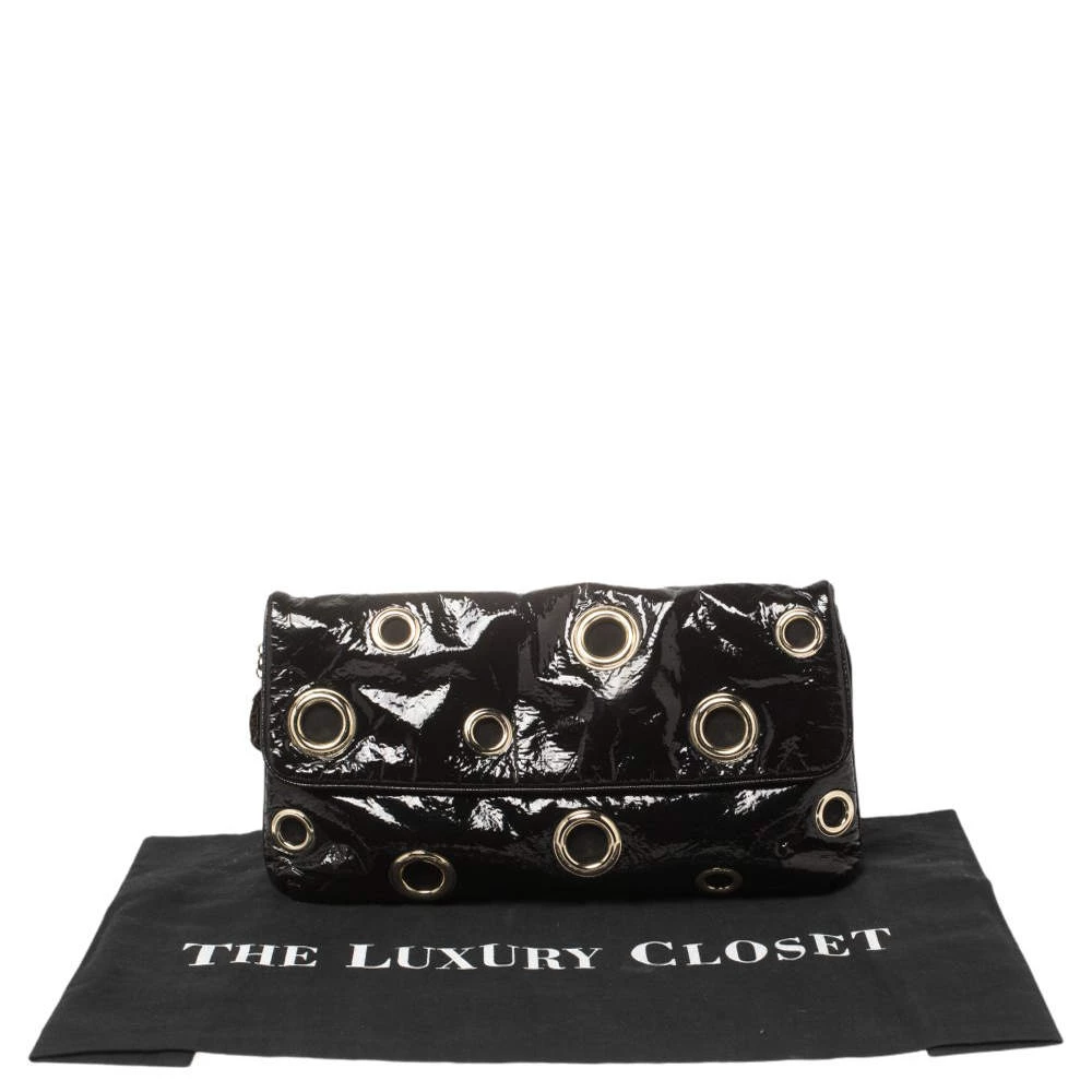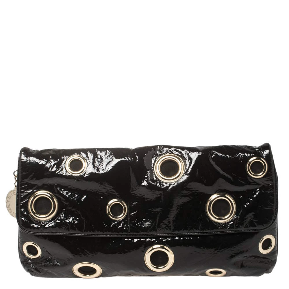 This lovely clutch from Stella McCartney is crafted from faux patent leather and features wonderful rivet embellishments on the exterior. It flaunts a front flap closure that opens to a satin-lined interior with enough space to carry all your daily essentials. It is one creation you definitely need to get your hands on!