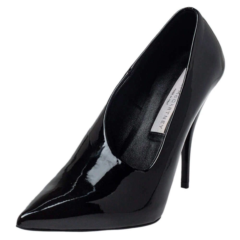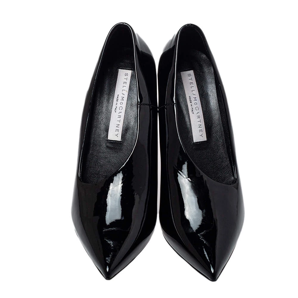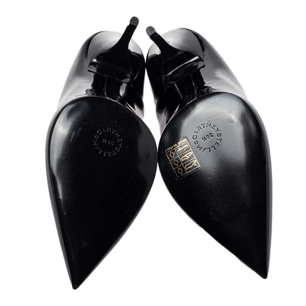 You are sure to fall head over heels in love with this pair of pumps from Stella McCartney. These stylish pumps are crafted in Italy from faux patent leather and come in a shade of black. They are styled with pointed toes and 11 cm heels. They are classy and very comfortable.