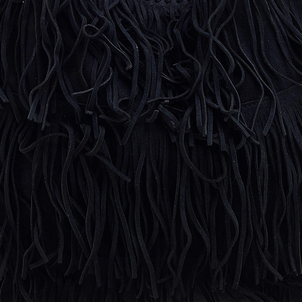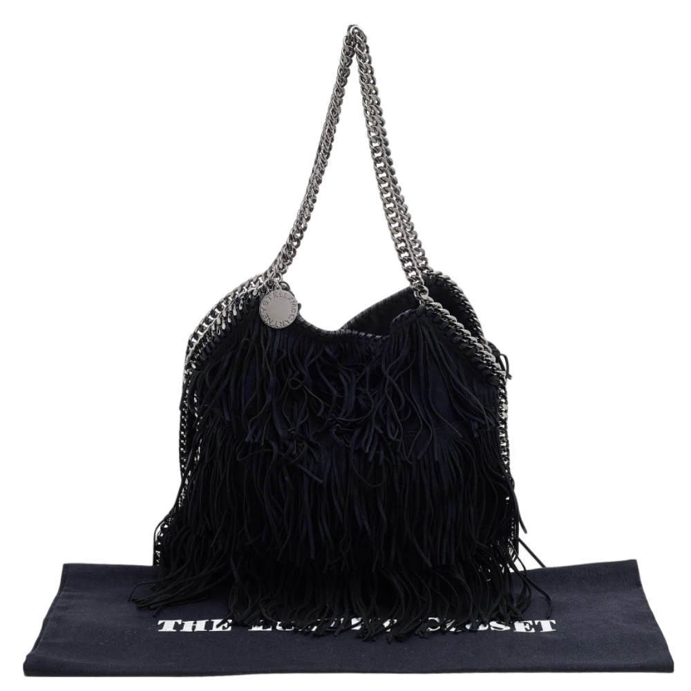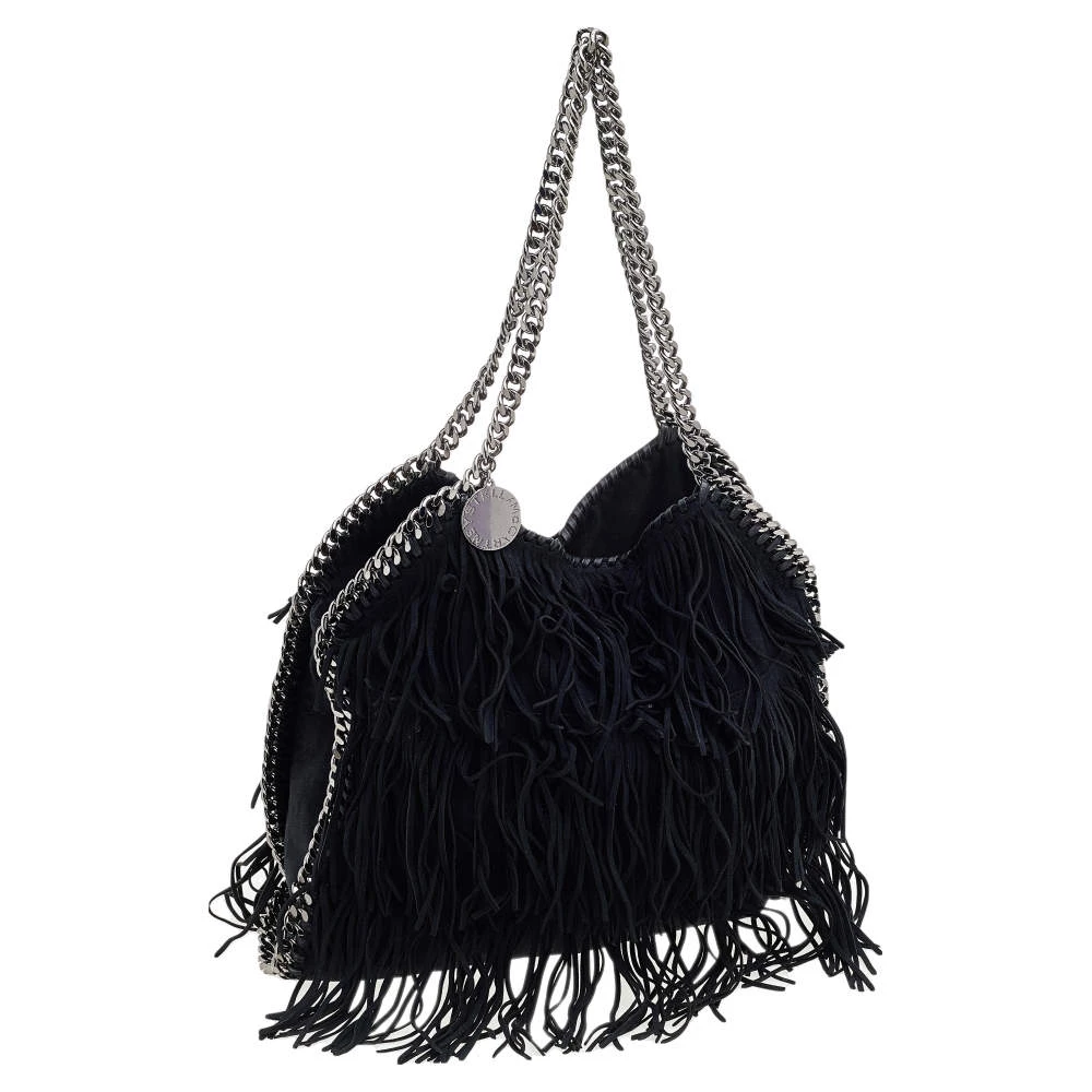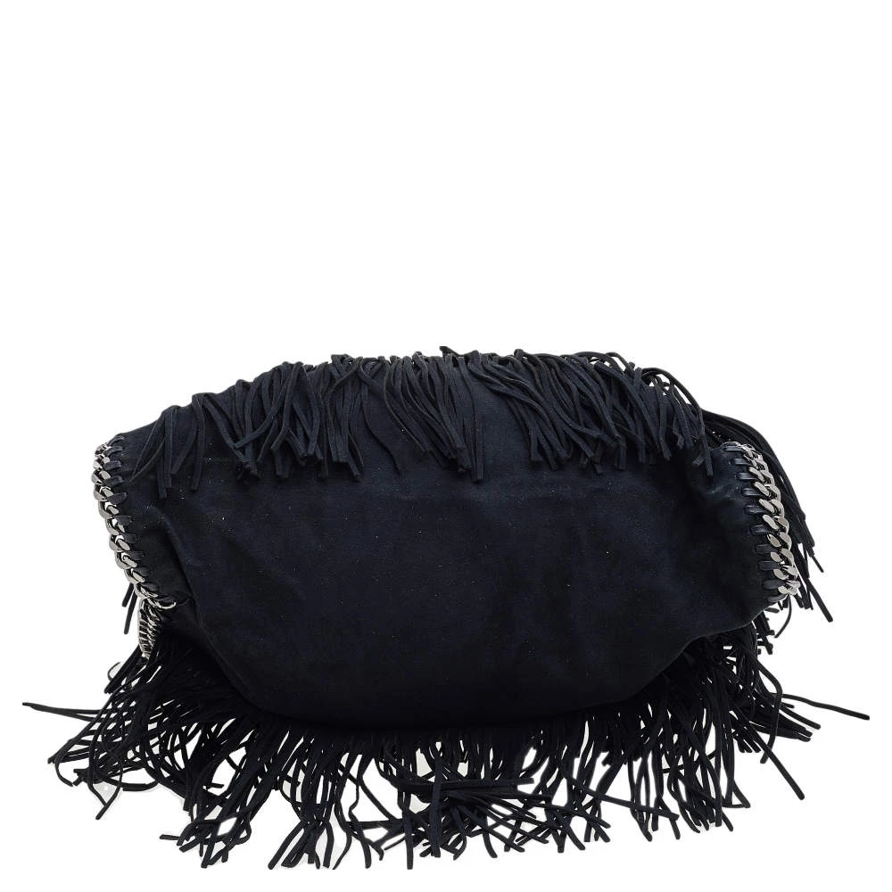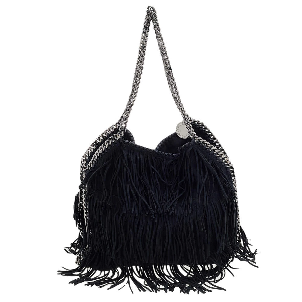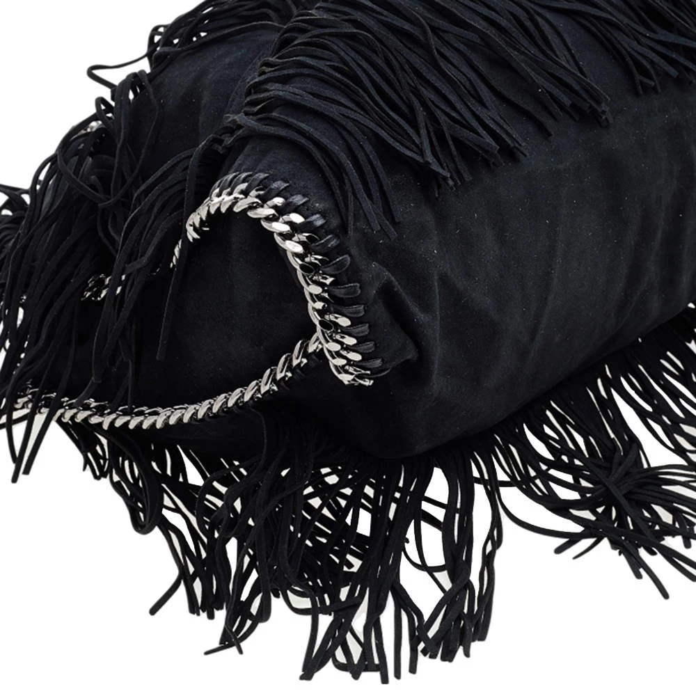 This Falabella tote from Stella McCartney is one of the most loved designs from the sustainably conscious label. This version is designed with black faux suede and added with fringes. While the chain detailing elevate its beauty, the fabric-lined interior will dutifully hold all your daily essentials. You can swing this tote using the chain handles.