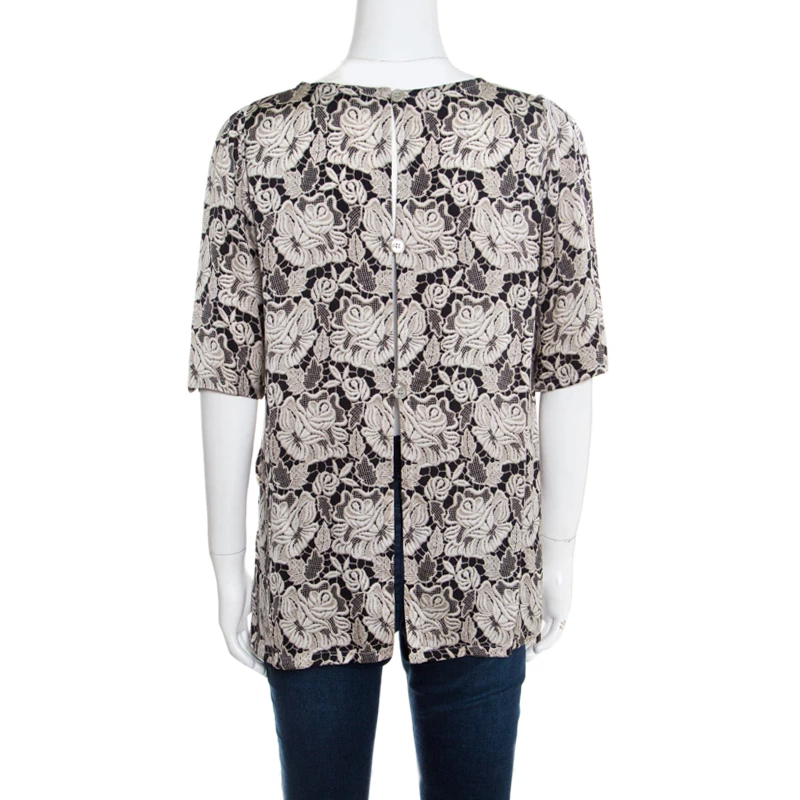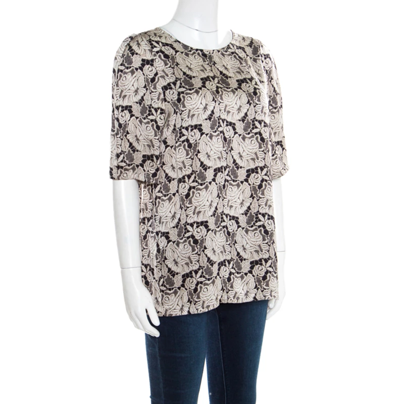 Stella McCartney Black Floral Lace Printed Silk Pyjama Blouse M For Women