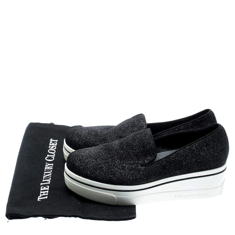 The black glittery Binx platform shoes are a brilliant comfort. The Stella McCartney shoes have been crafted with glitter fabric in Spain and they are easy to slip on. The trendy shoes feature faux leather insoles that make them comfortable to wear during all seasons.