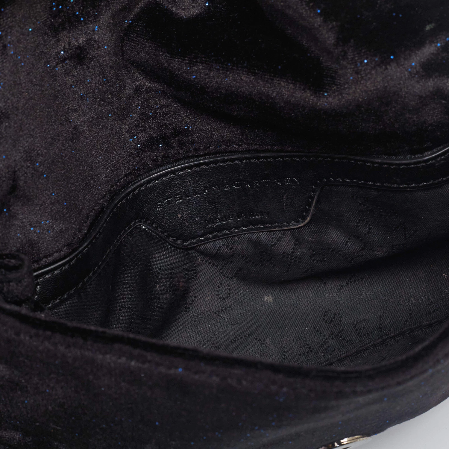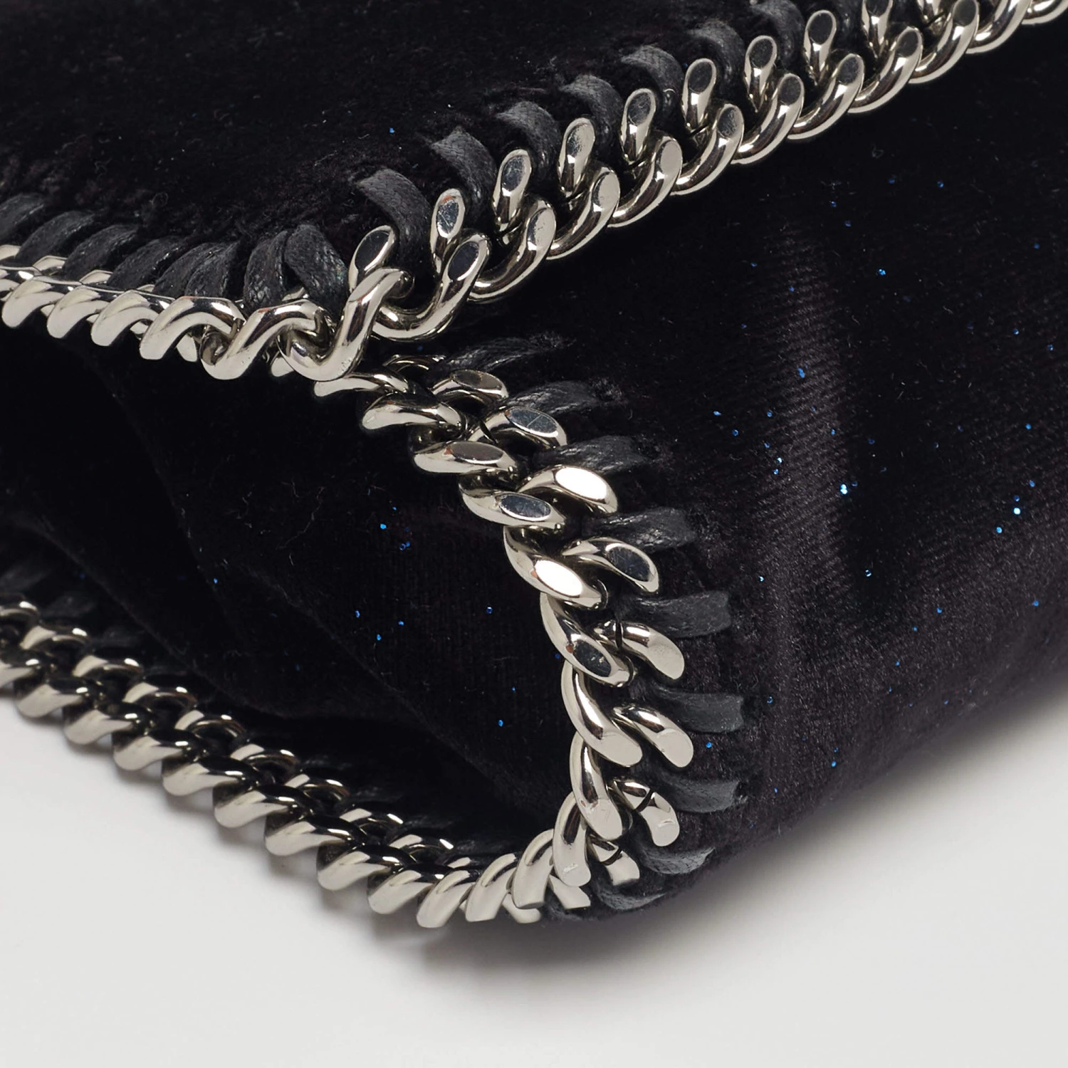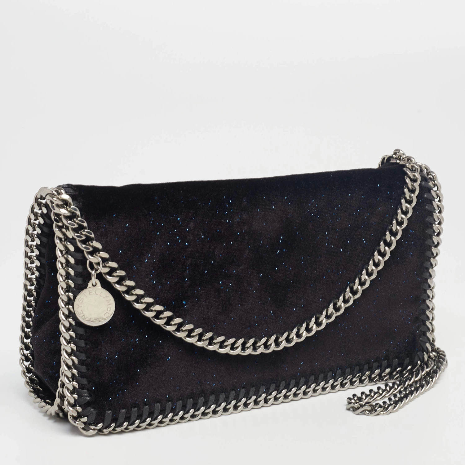 The uber-chic crossbody bag from Stella McCartney totally stuns! It is beautifully crafted from velvet and comes in a gorgeous black hue. A chain shoulder strap and chain lining around the bag elevate this versatile piece that will go with any outfit.