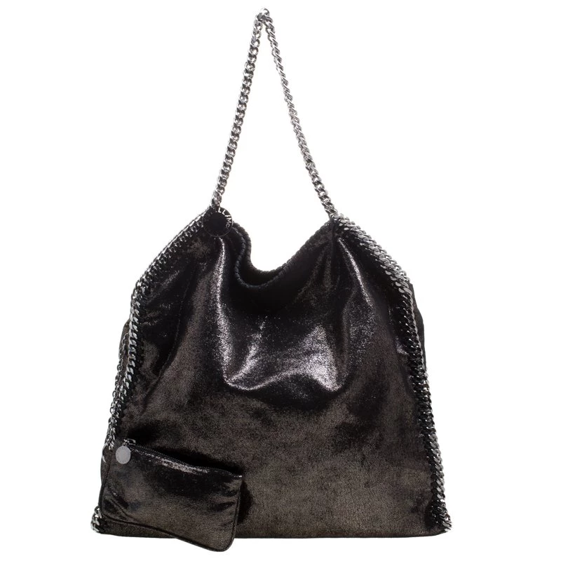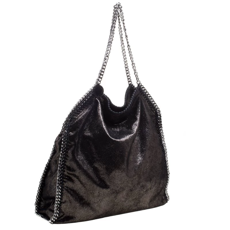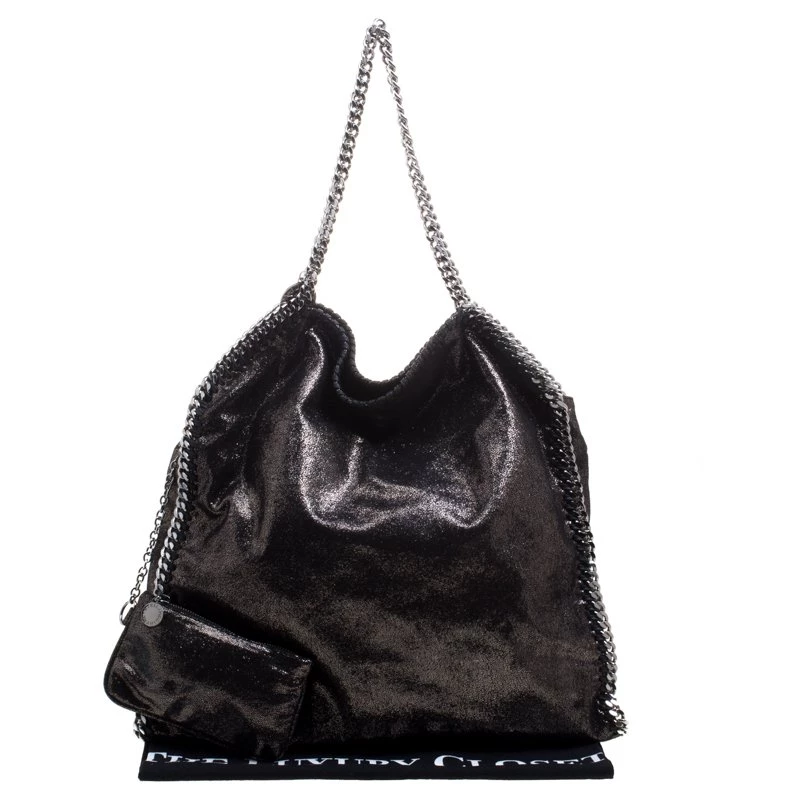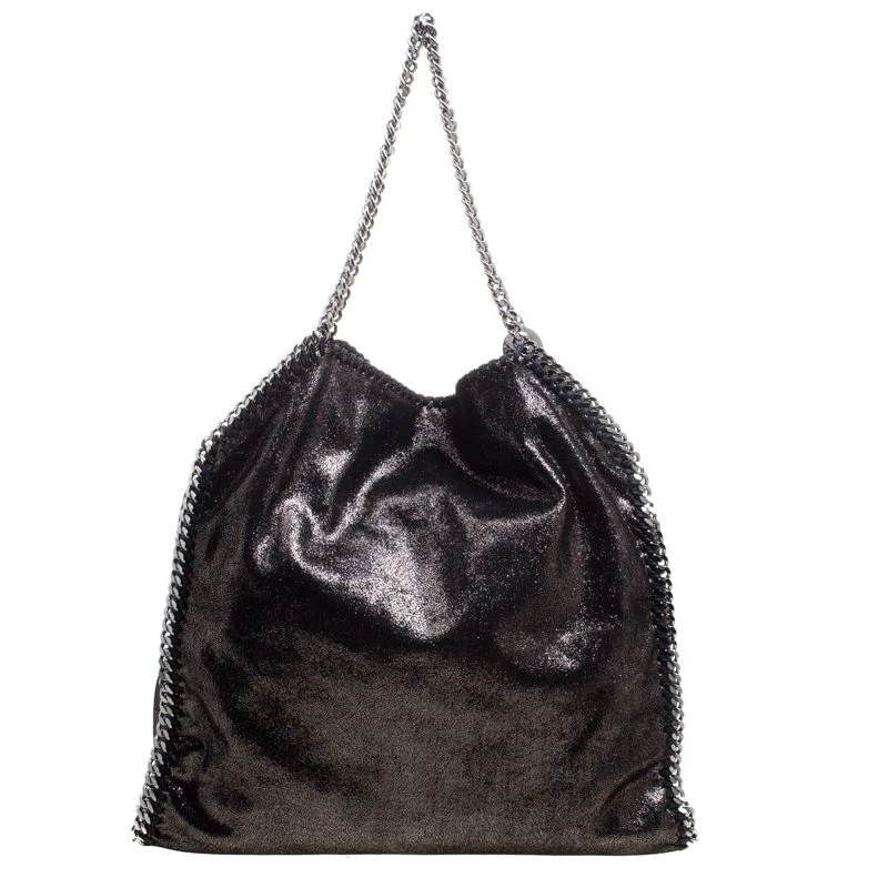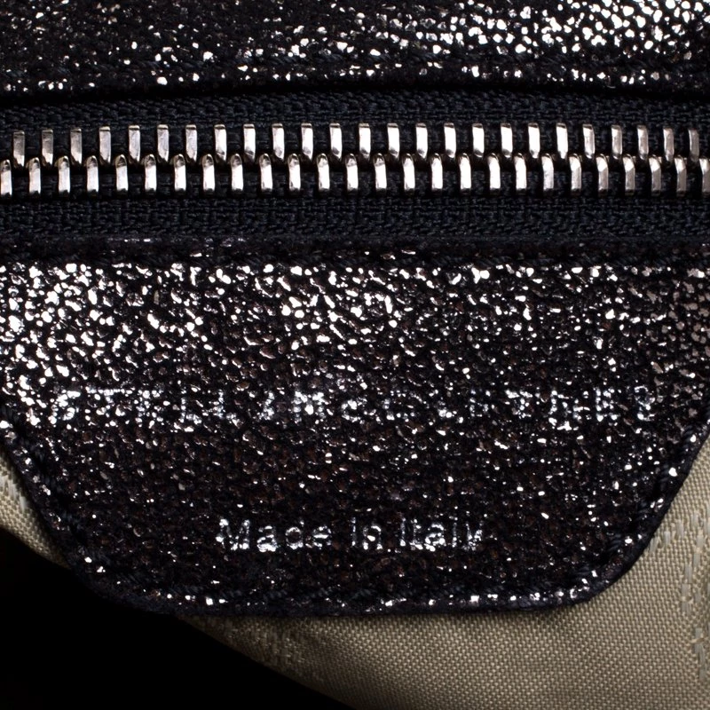Stella McCartney is known for her chic designs and this Falabella tote perfectly embodies this trait. Crafted in Italy from faux leather with a fabric interior, this tote has a beautiful black iridescent exterior and silver tone chain details at its contours and as handles. This bag can be carried with your everyday outfits.