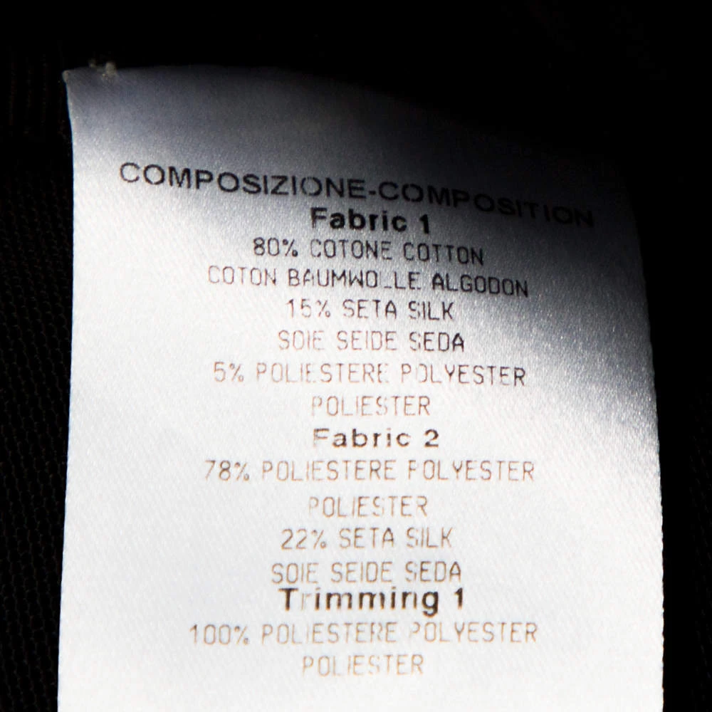 - Fabric: Fabric 1: 80% Cotton, 15% Silk, 5% Polyester ; Fabric 2: 78% Polyester, 22% Silk ; Trim: 100% Polyester ; Lining: 52% Rayon, 48% Cotton